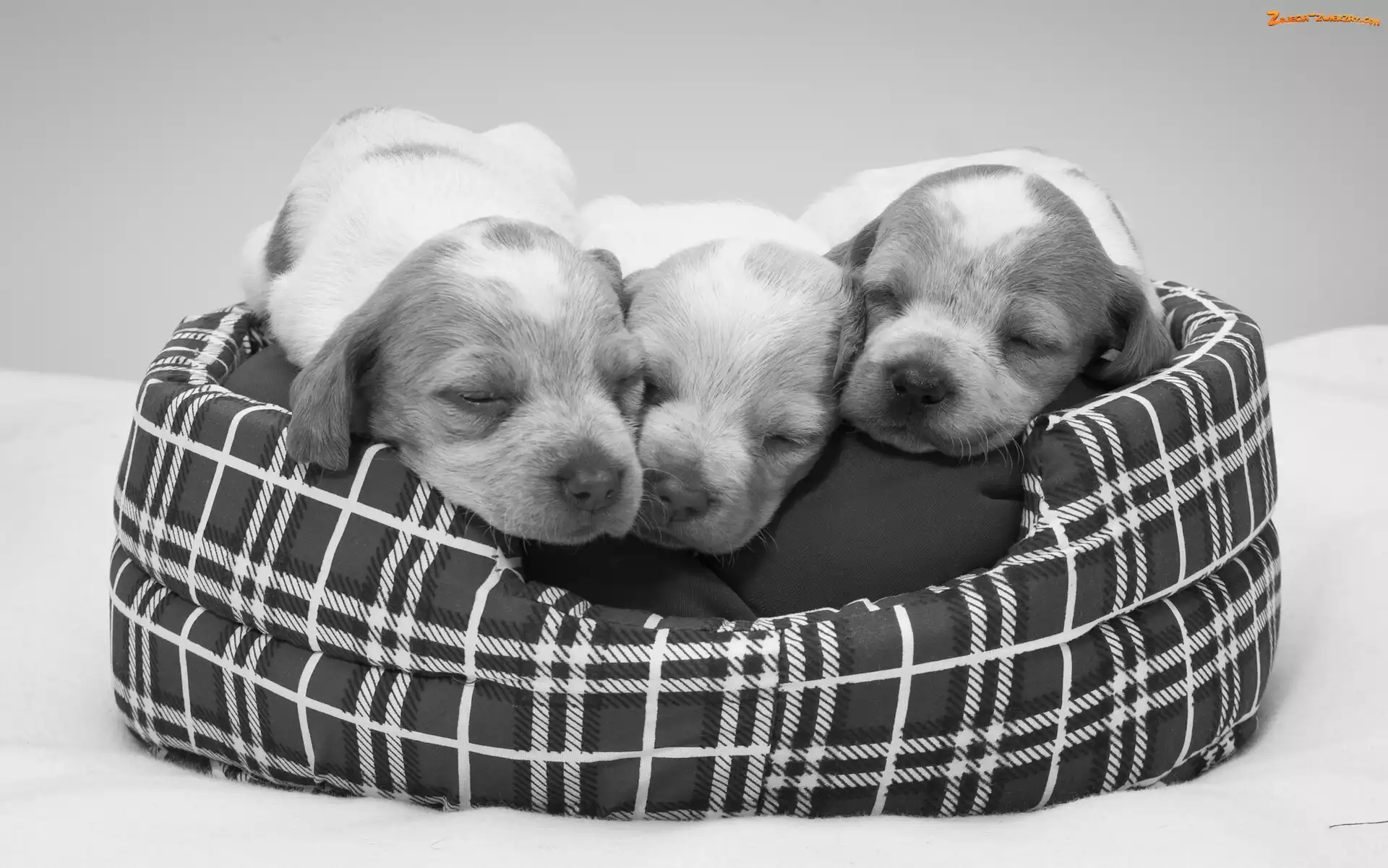 Zdjęcie: Szczeniaki, Czarno-Białe, Trzy, Legowisko