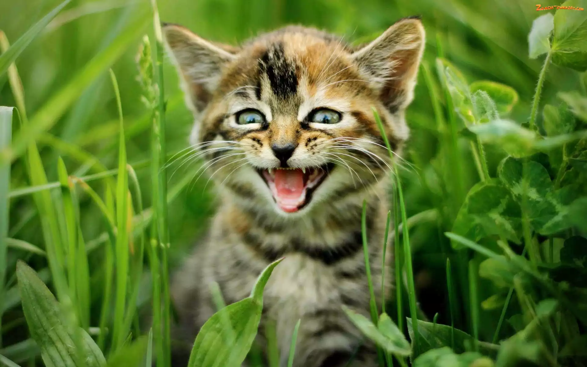 Zdjęcie: Zieleń, Szczęśliwy, Kotek