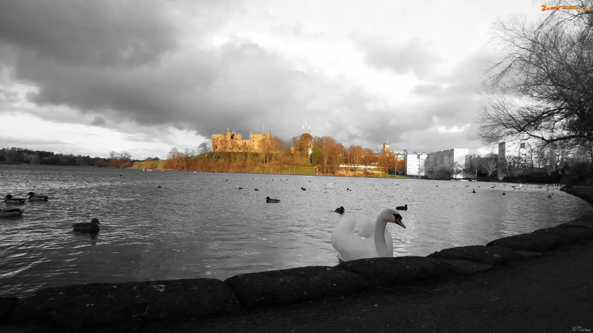 Zdjęcie: Biel, Szkocja, Jezioro, Łabędź, Czerń, Linlithgow, Pałac