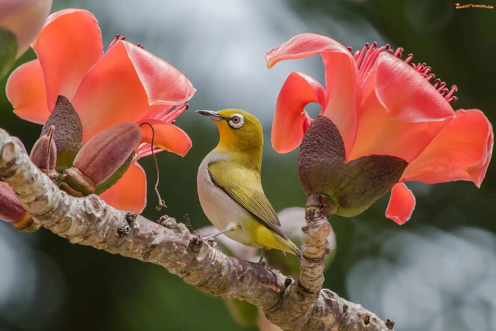 Zdjęcie: Szlarnik, Kwiaty, Ptak, Gałązka