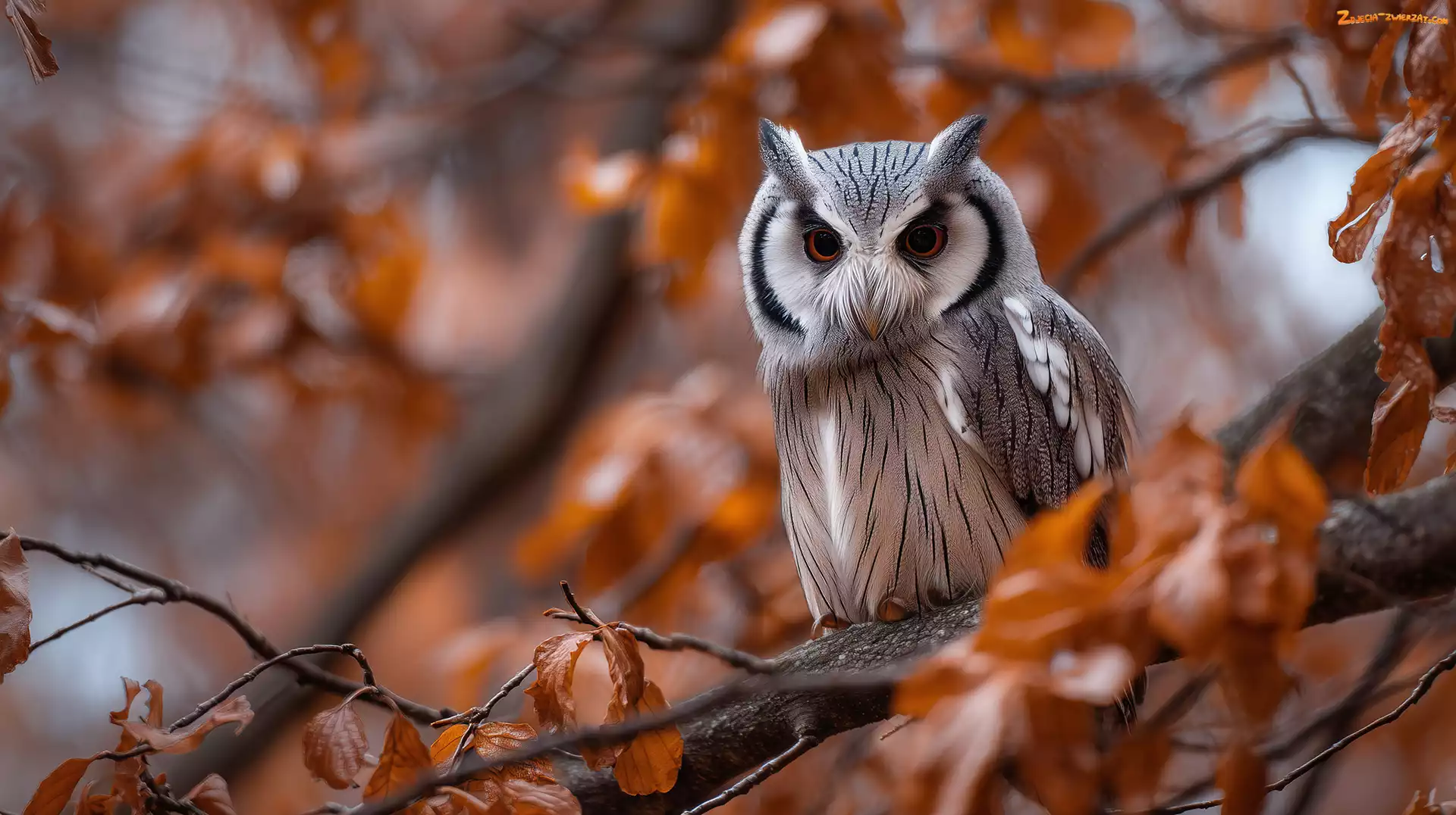 Zdjęcie: Liście, Jesienne, Grafika, Sowa, AI, Puszczyk, Gałąź, Szlarogłówka