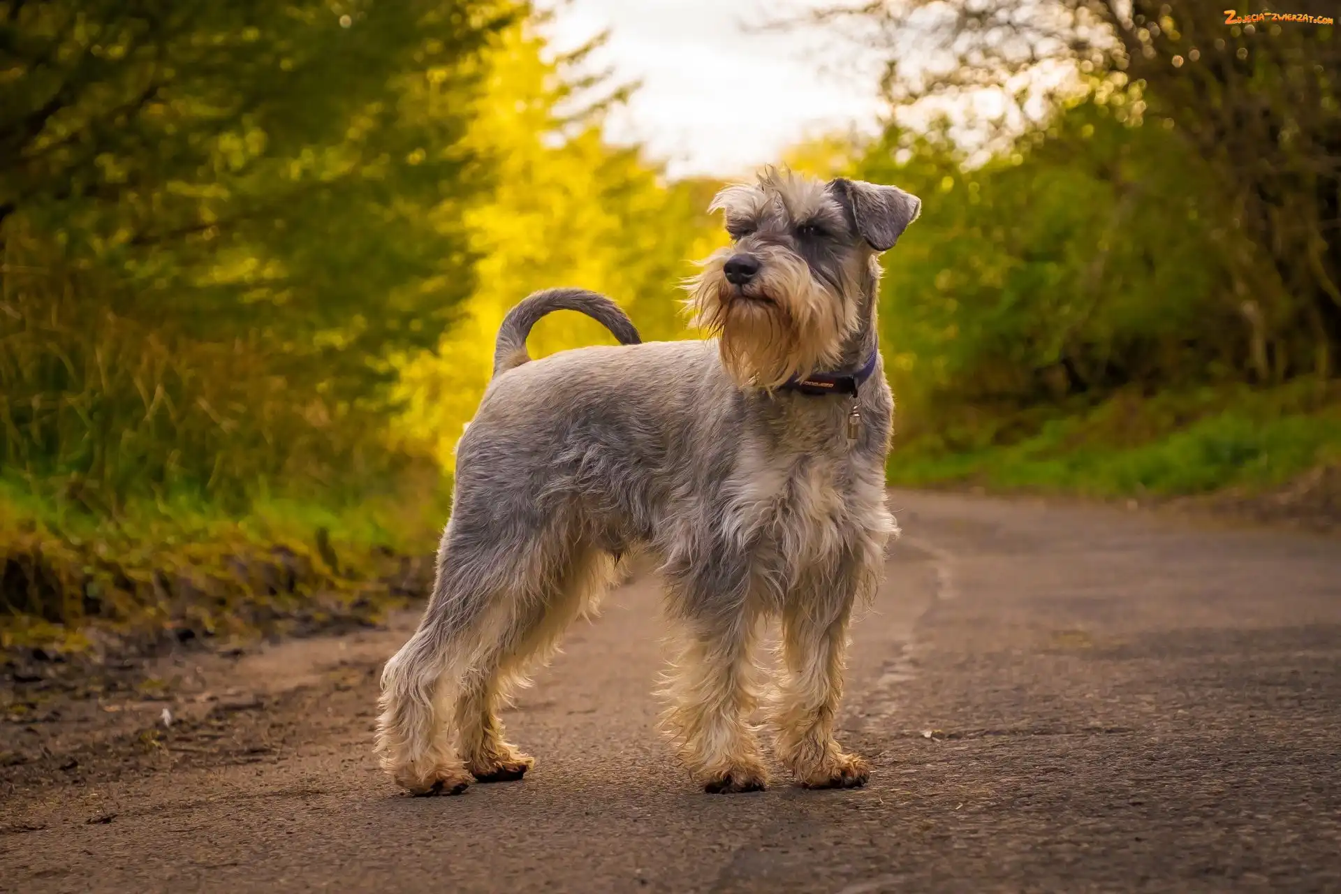 Zdjęcie: Sznaucer, Drzewa, Pies, Droga