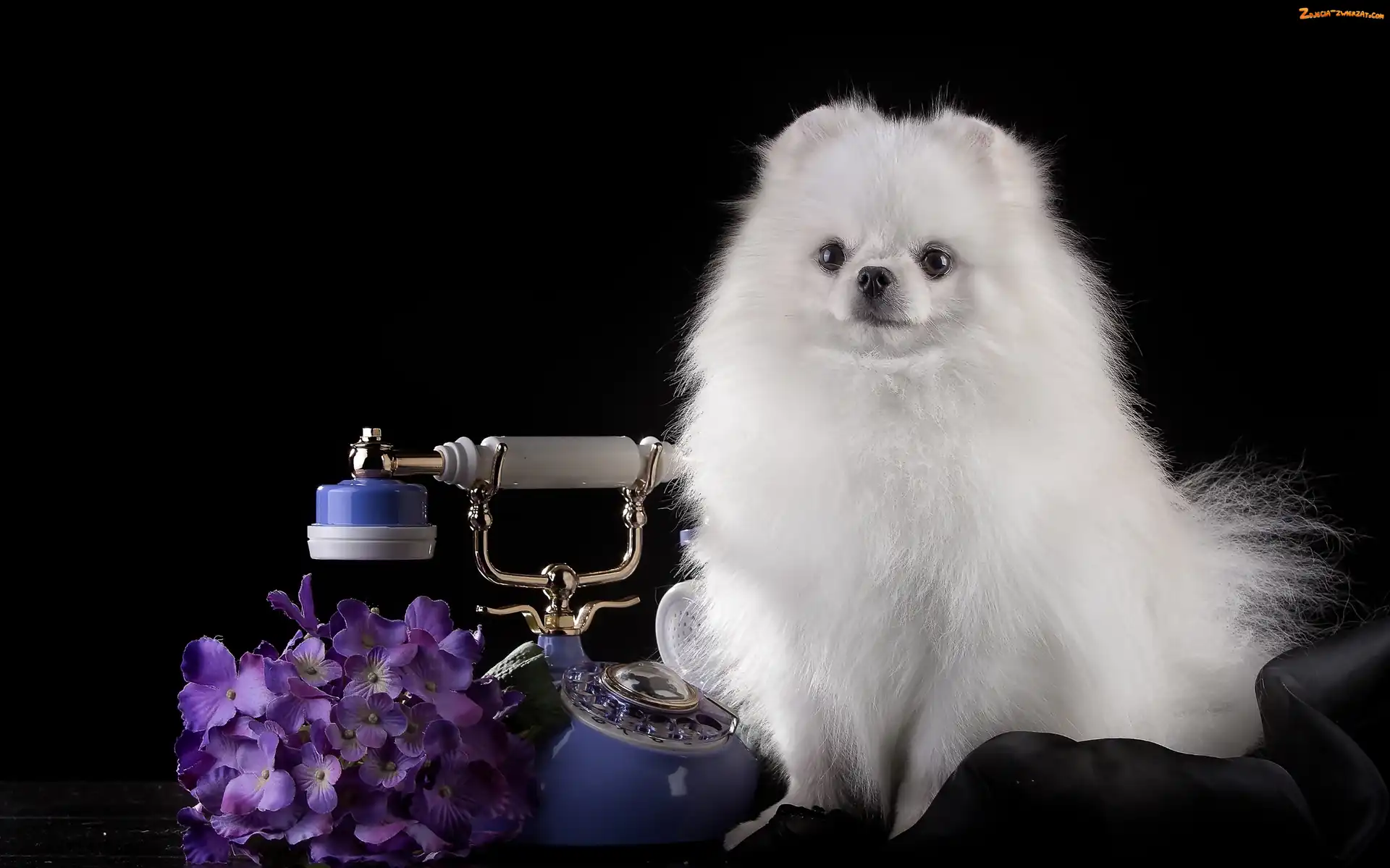 Zdjęcie: Szpic, Hortensje, Biały, Telefon