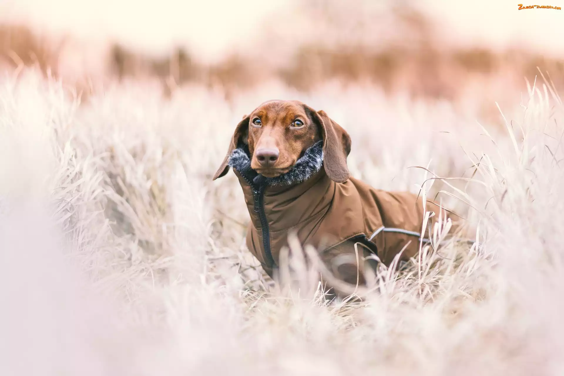 Zdjęcie: Szron, Trawa, Jamnik, Pies, Ubranko