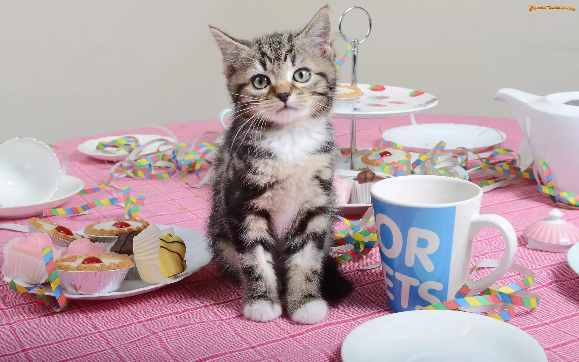 Zdjęcie: Talerzyki, Babeczki, Kot, Mały, Kubek
