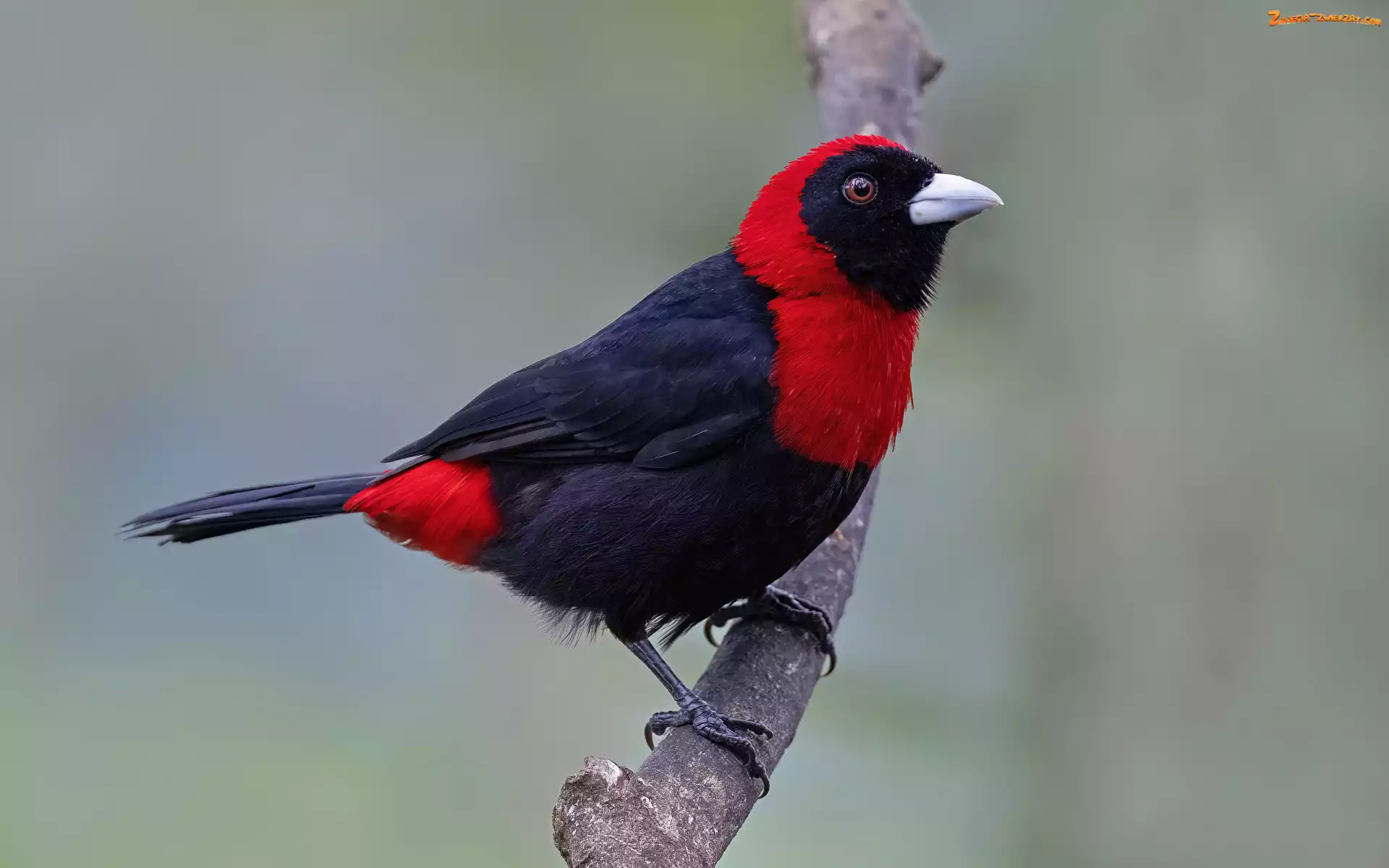 Zdjęcie: Ptak, Tapiranga maskowa, Gałąź, Zbliżenie