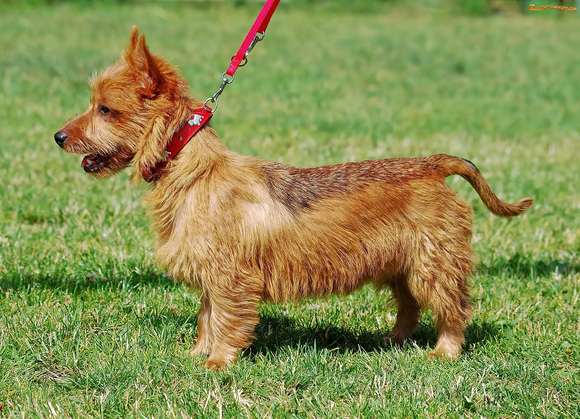 Zdjęcie: Pies, Terier Australijski, Trawnik, Smycz