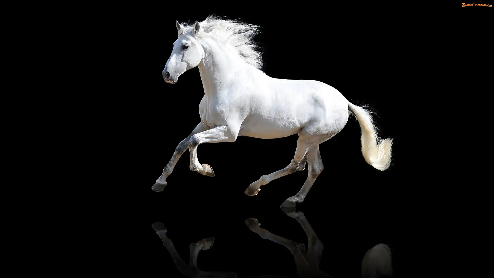 Tło, Czarne, Koń andaluzyjski, Biały, Odbicie