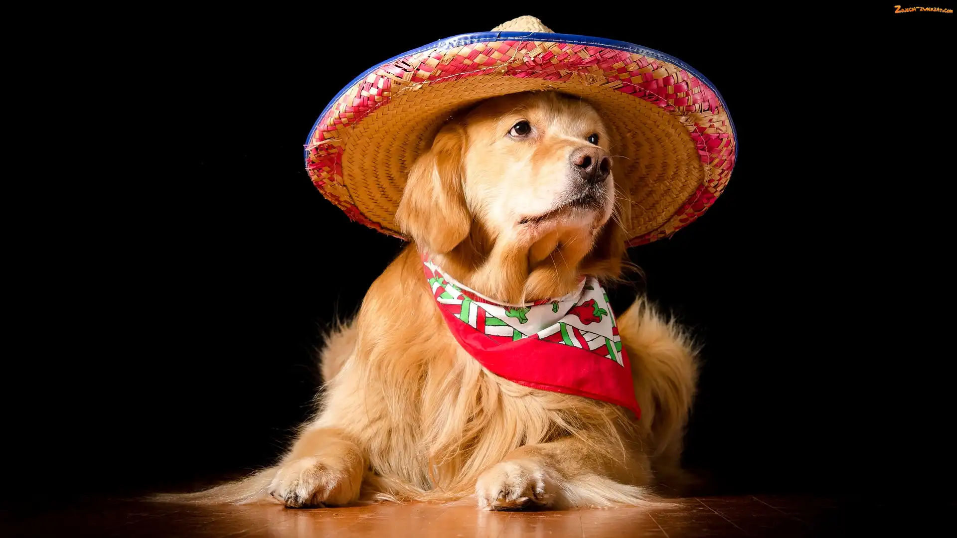 Zdjęcie: Ciemne tło, Apaszka, Golden retriever, Pies, Kapelusz