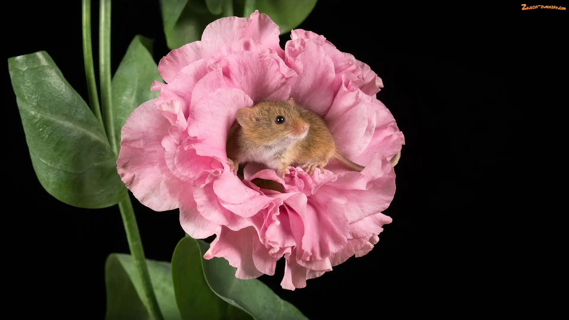 Zdjęcie: Czarne tło, Liście, Badylarka pospolita, Myszka, Kwiat