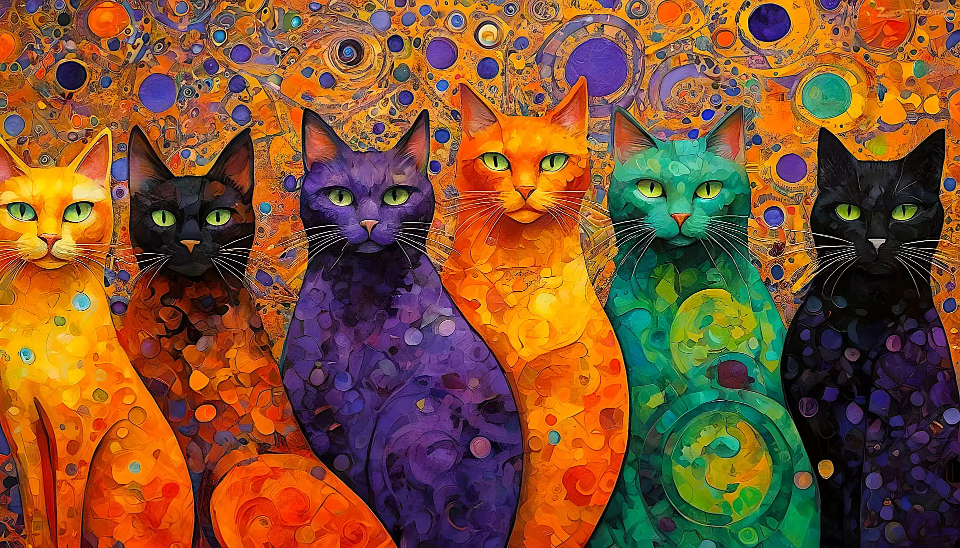 Zdjęcie: Kolorowe, Koty, Grafika, Tło
