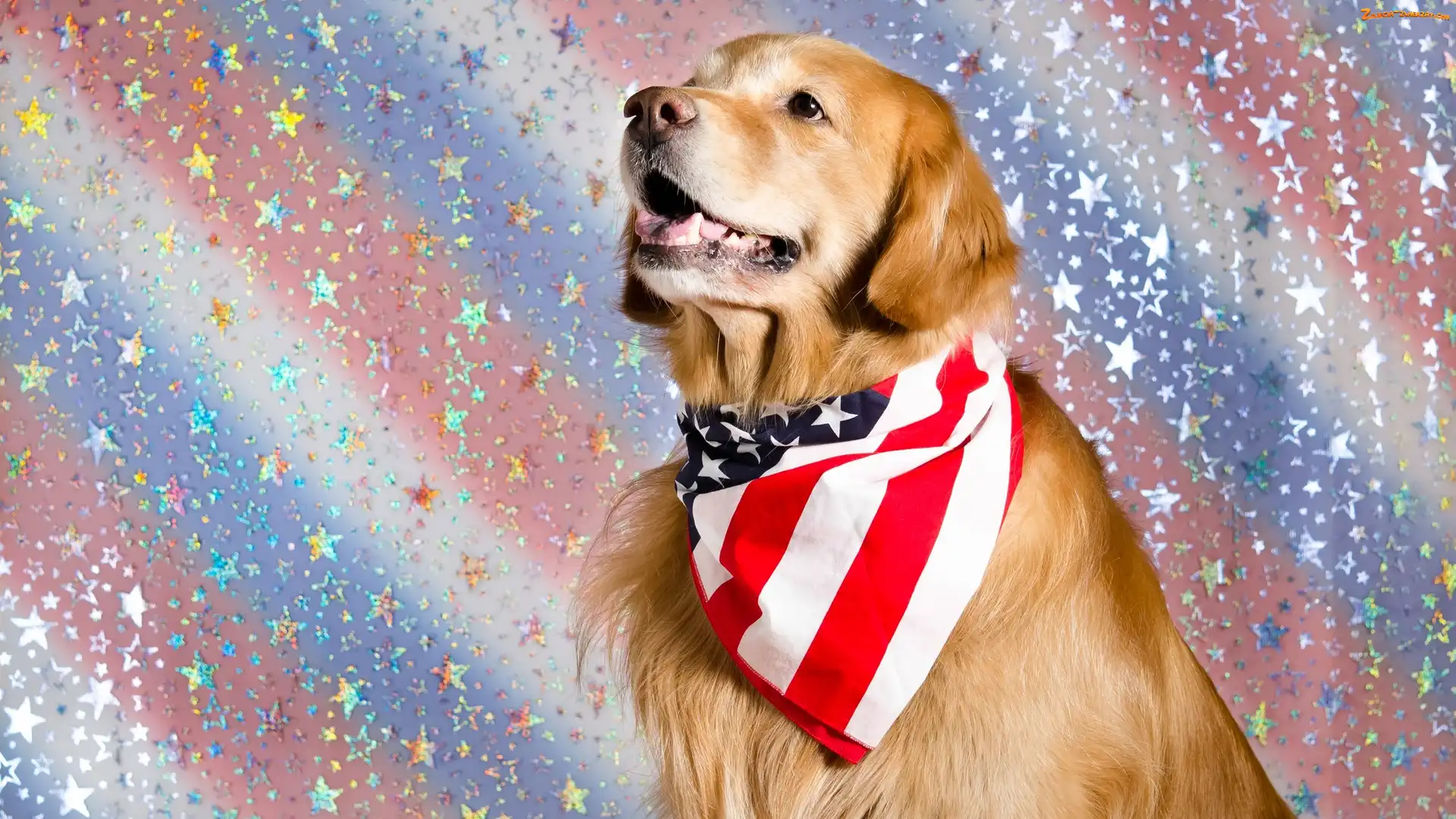 Zdjęcie: Kolorowe tło, Chusta, Golden retriever, Pies, Mordka