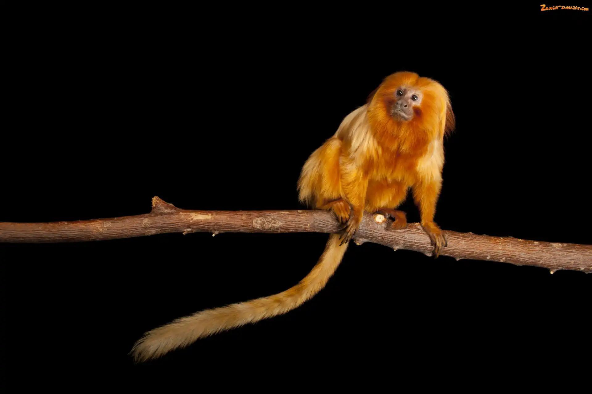 Zdjęcie: Tło, Czarne, Marmozeta lwia, Małpa, Gałązka