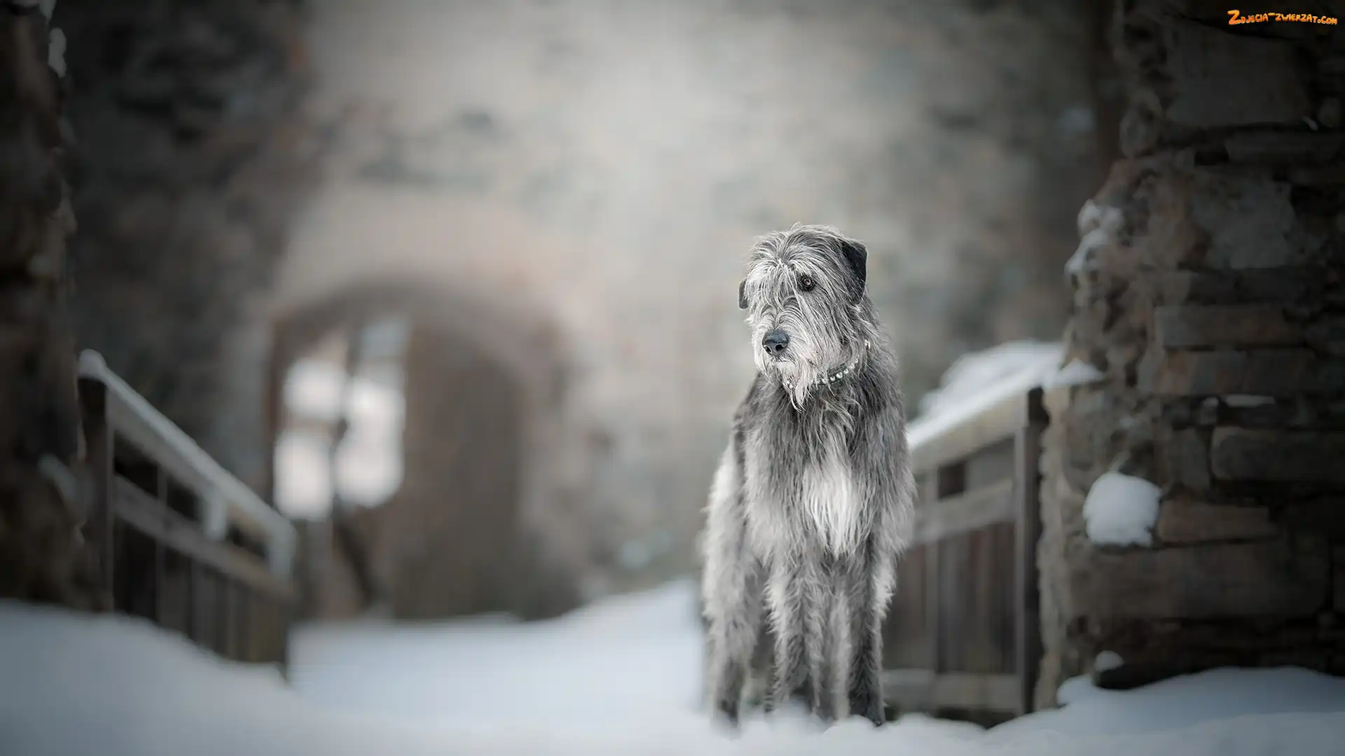 Zdjęcie: Tło, Rozmyte, Wilczarz irlandzki, Pies, Śnieg