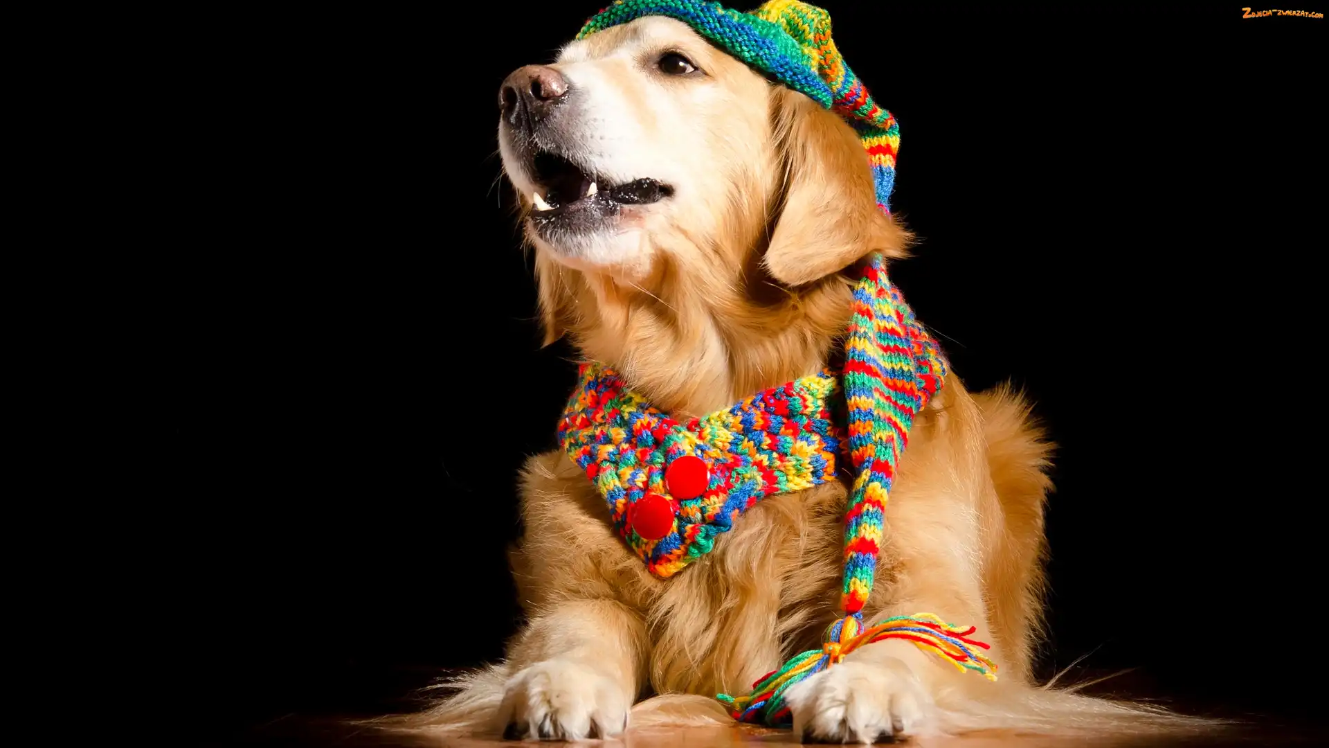 Zdjęcie: Tło, Ciemne, Szalik, Golden retriever, Czapka