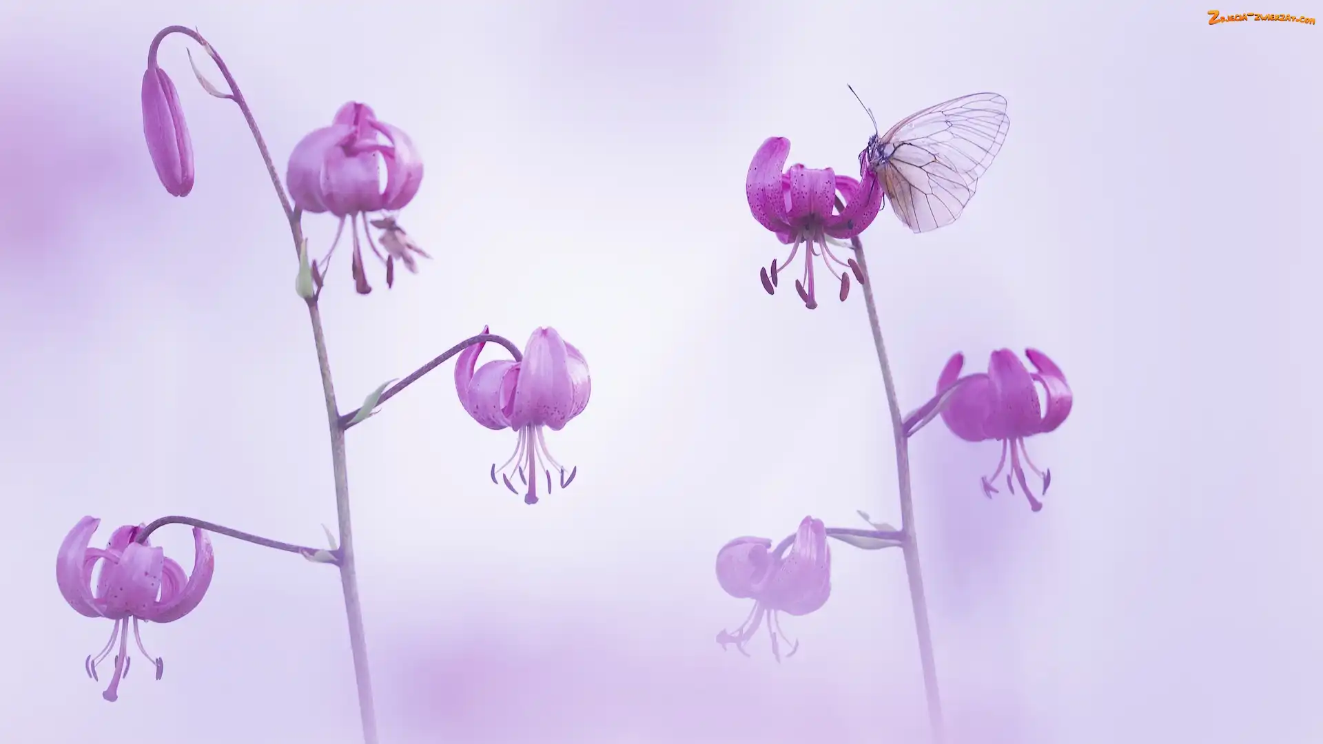Zdjęcie: Rozmyte tło, Lilie, Niestrzęp głogowiec, Motyl, Kwiaty