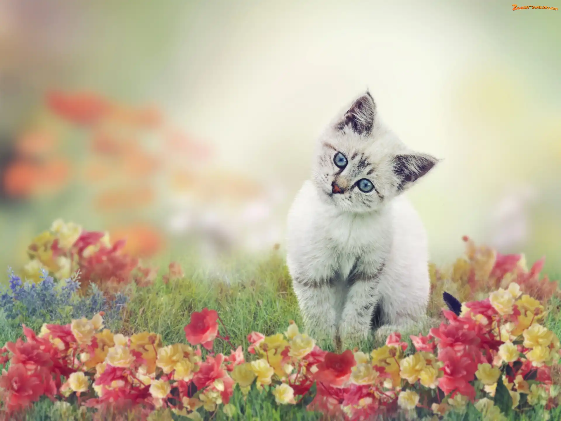 Zdjęcie: Tło, Rozmyte, Kotek, Srebrzysty, Kwiaty