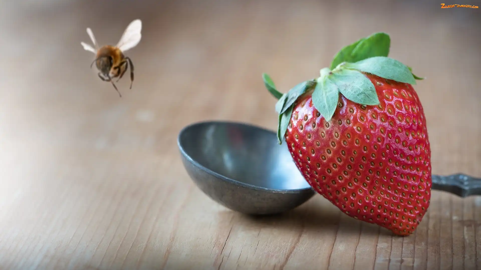 Zdjęcie: Tło, Rozmyte, Łyżka, Truskawka, Pszczoła