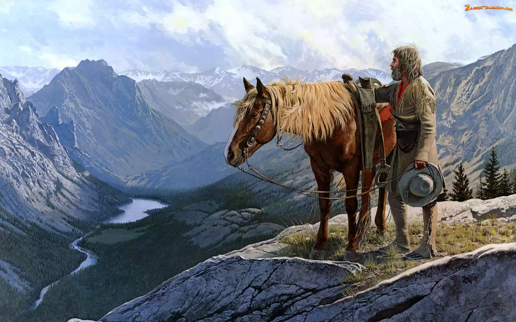 Zdjęcie: Traper, Koń, Góry, Obraz, Rzeka