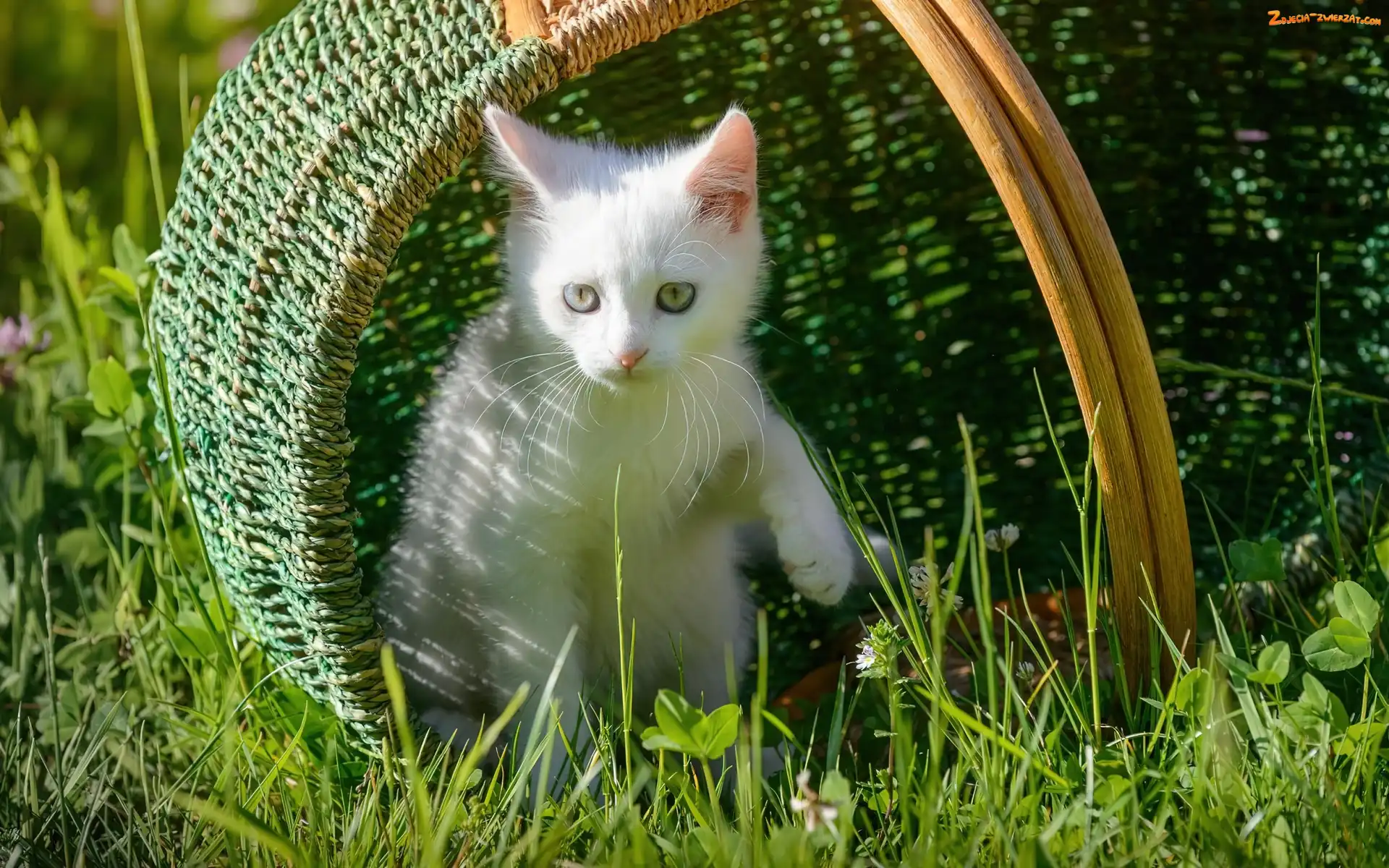 Zdjęcie: Trawa, Łąka, Kotek, Biały, Koszyk