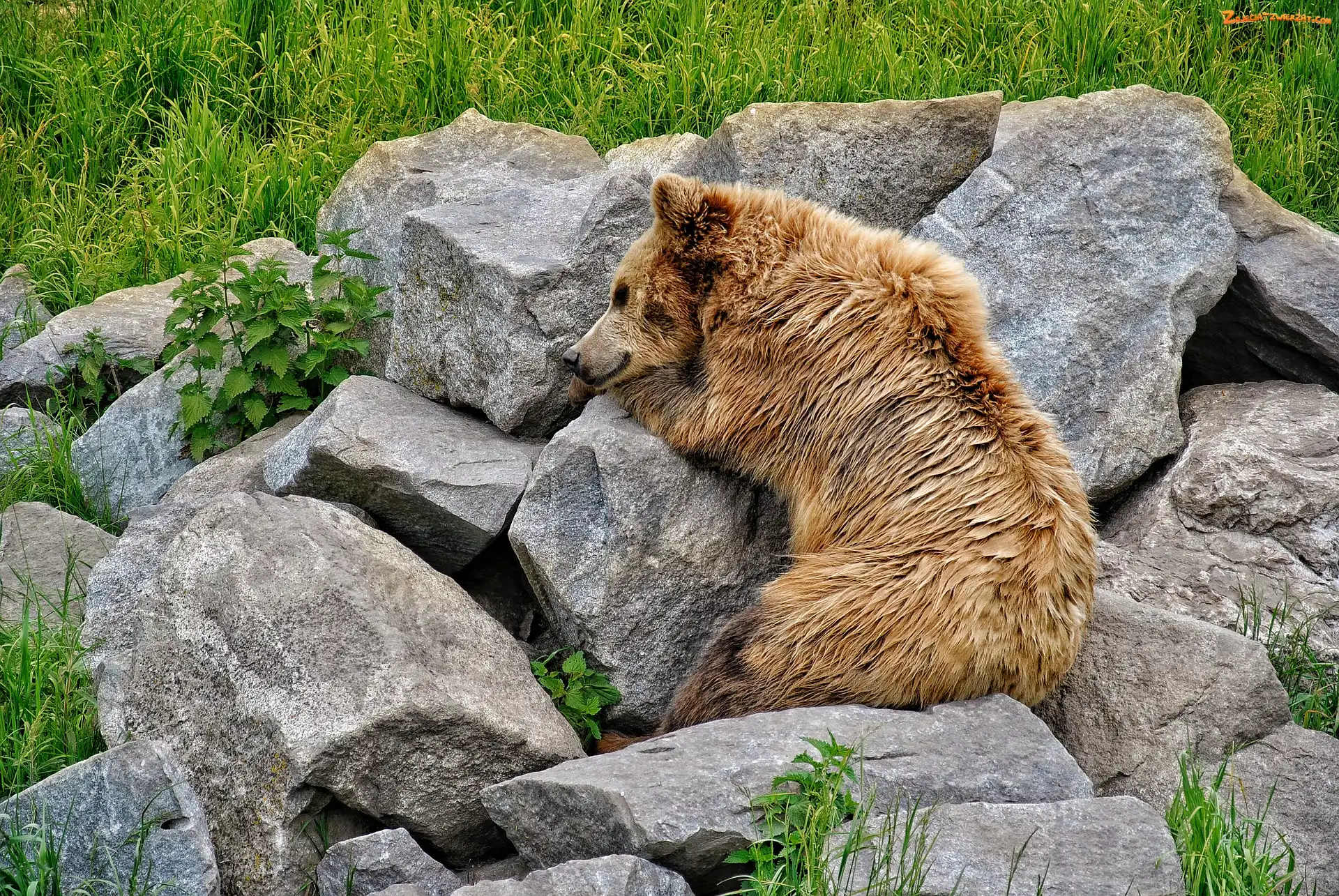 Zdjęcie: Trawa, Niedźwiedź brunatny, Kamienie