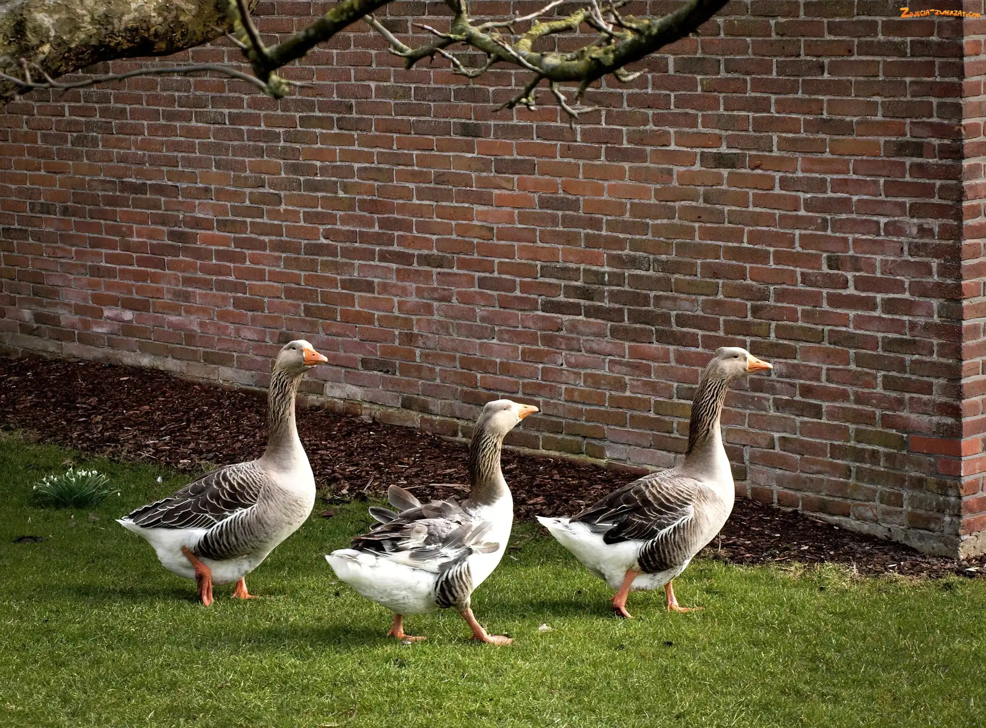 Zdjęcie: Trawa, Trzy, Cegły, Z, Gęsi, Ściana