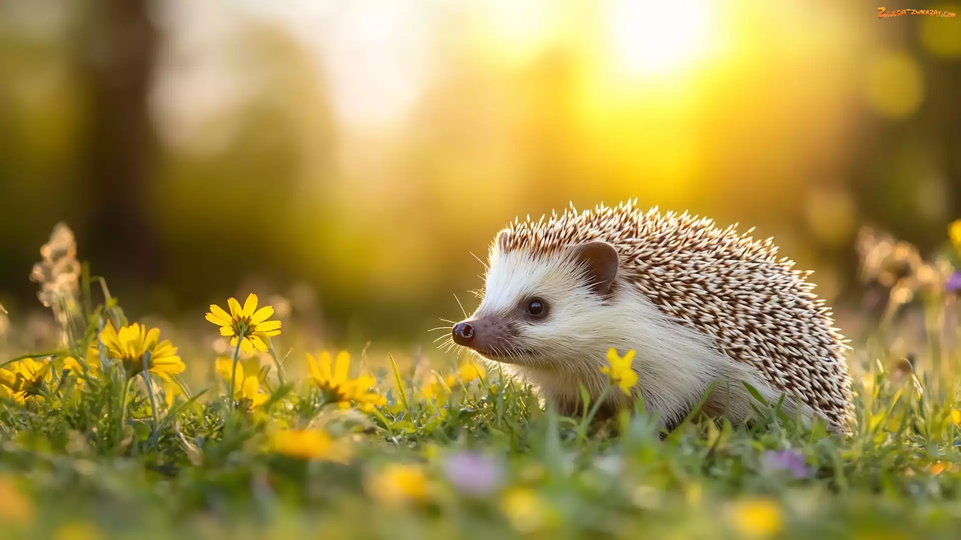 Zdjęcie: Jeż, Łąka, Kwiaty, Trawa