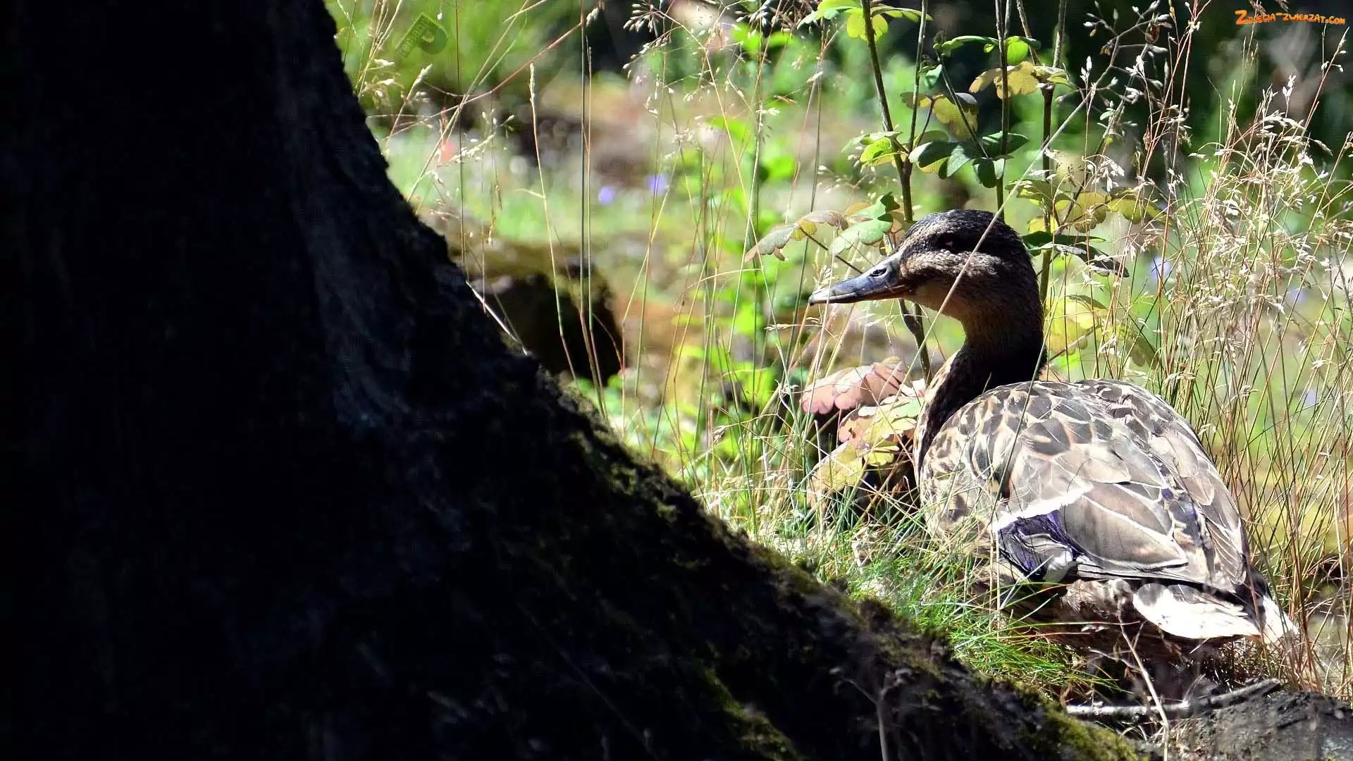 Trawa, Drzewa, Kaczka, Pień