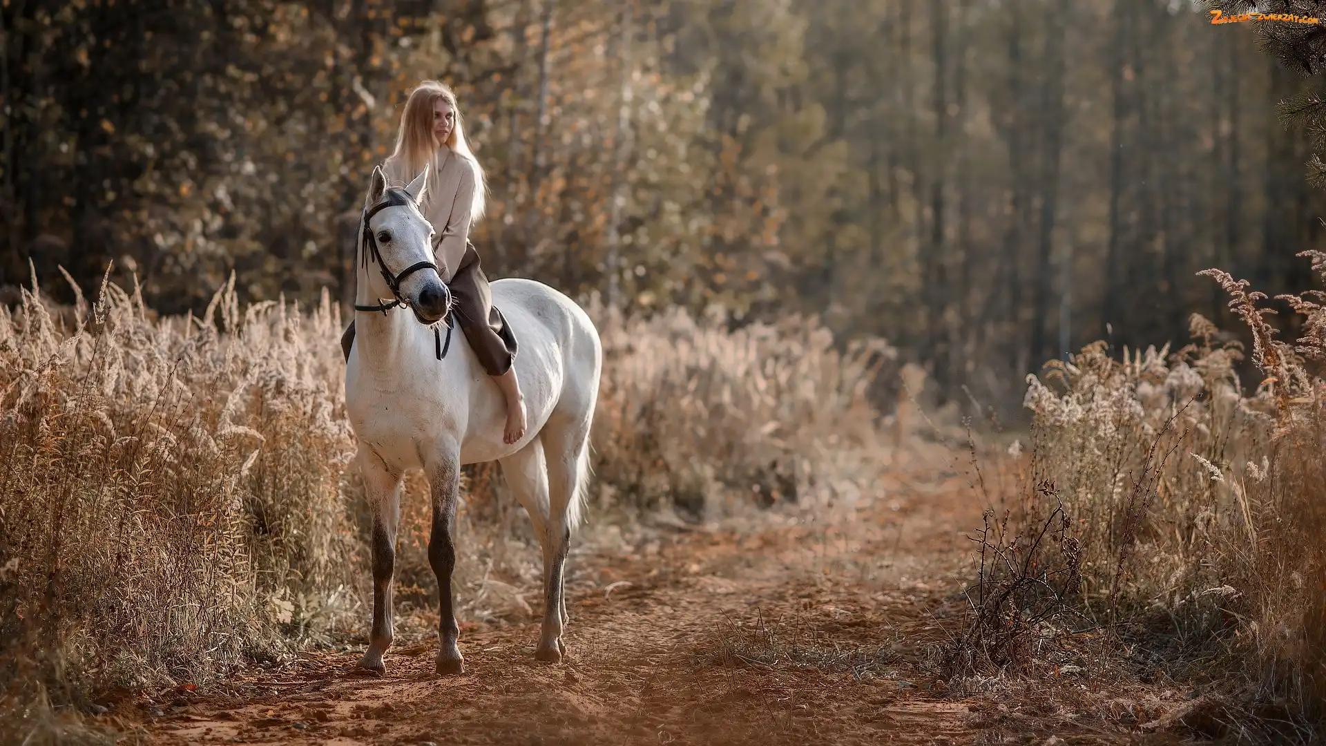 Zdjęcie: Trawa, Droga, Blondynka, Kobieta, Koń