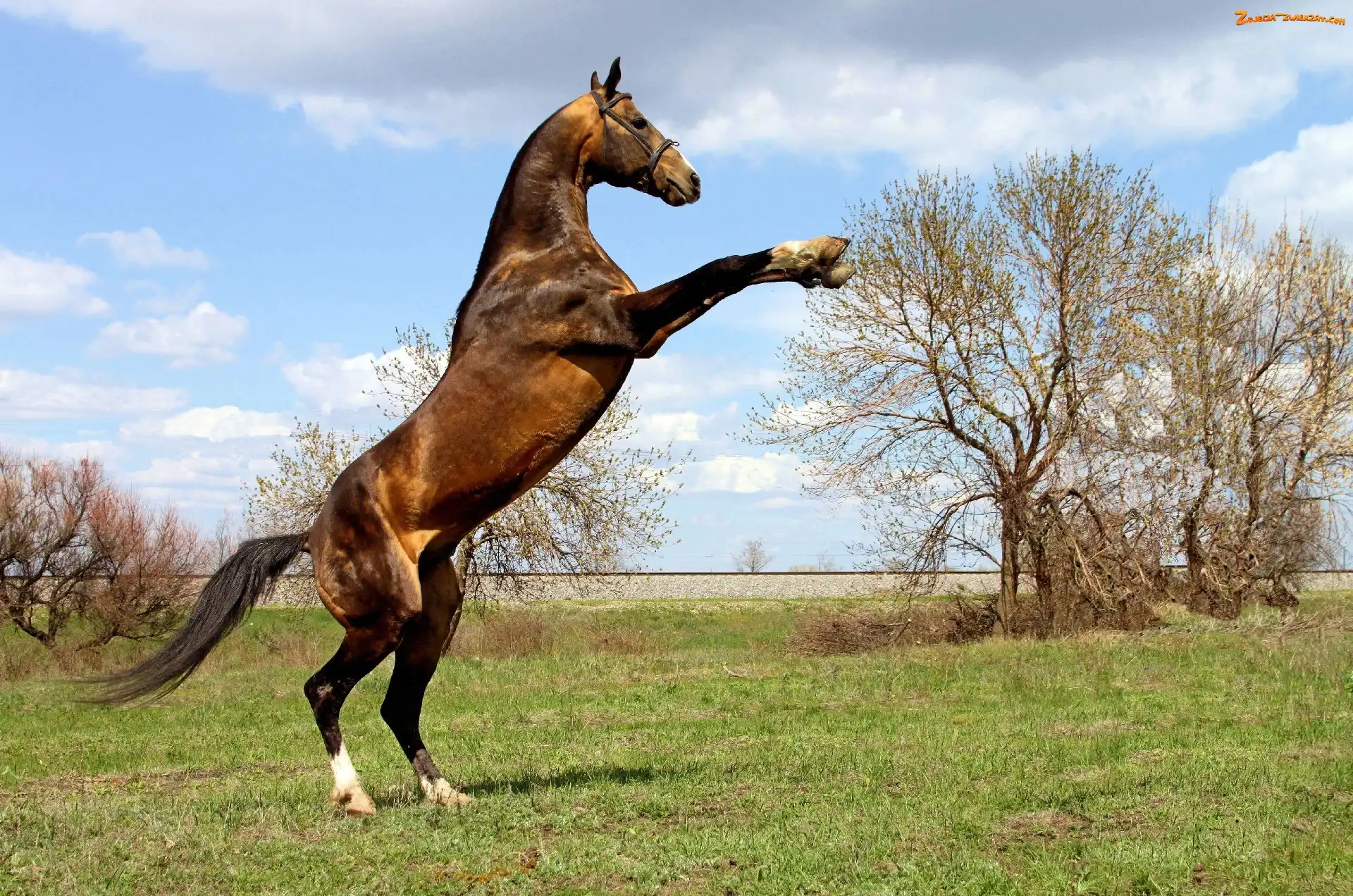 Zdjęcie: Trawa, Niebo, Koń, Drzewa