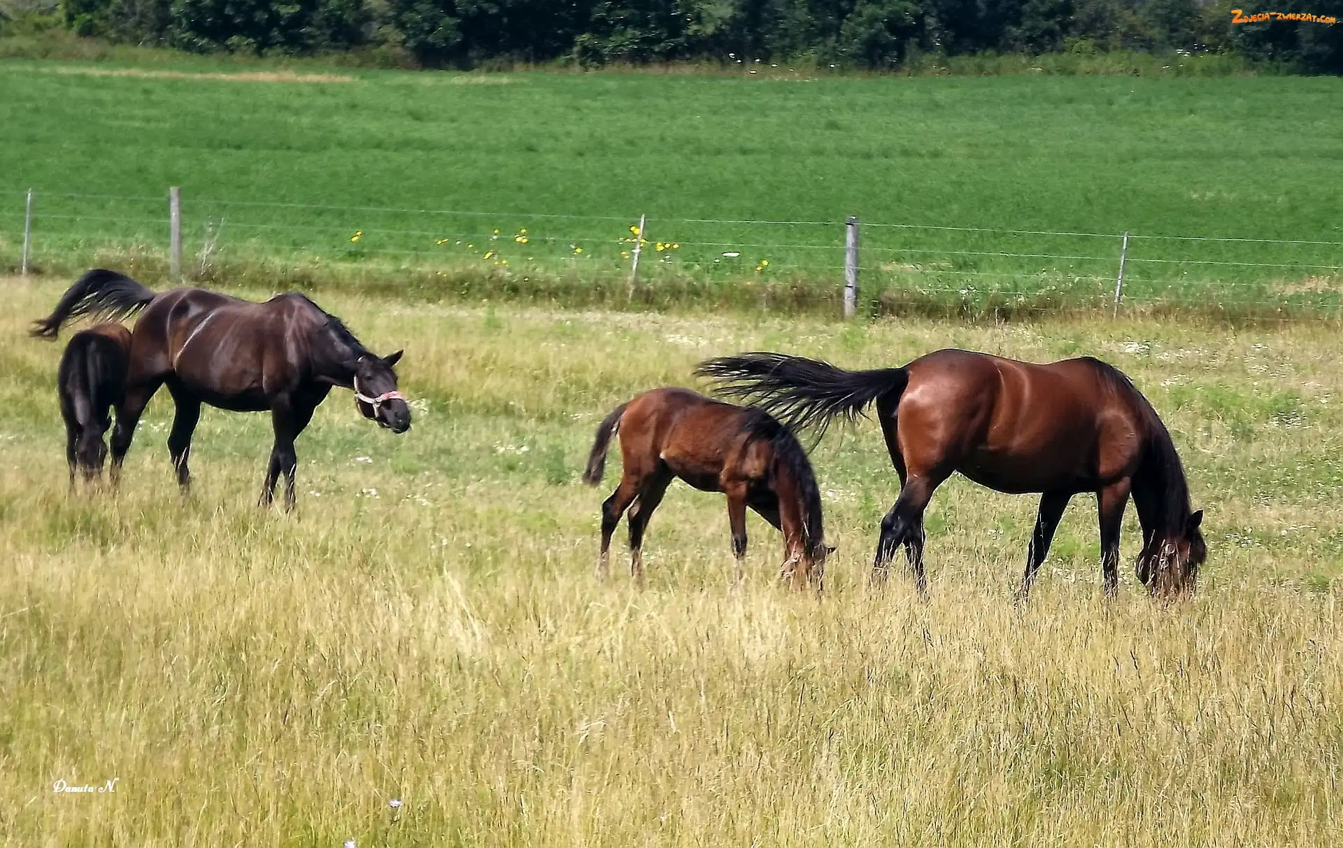 Zdjęcie: Trawa, Lato, Łąka, Konie, Pastwisko