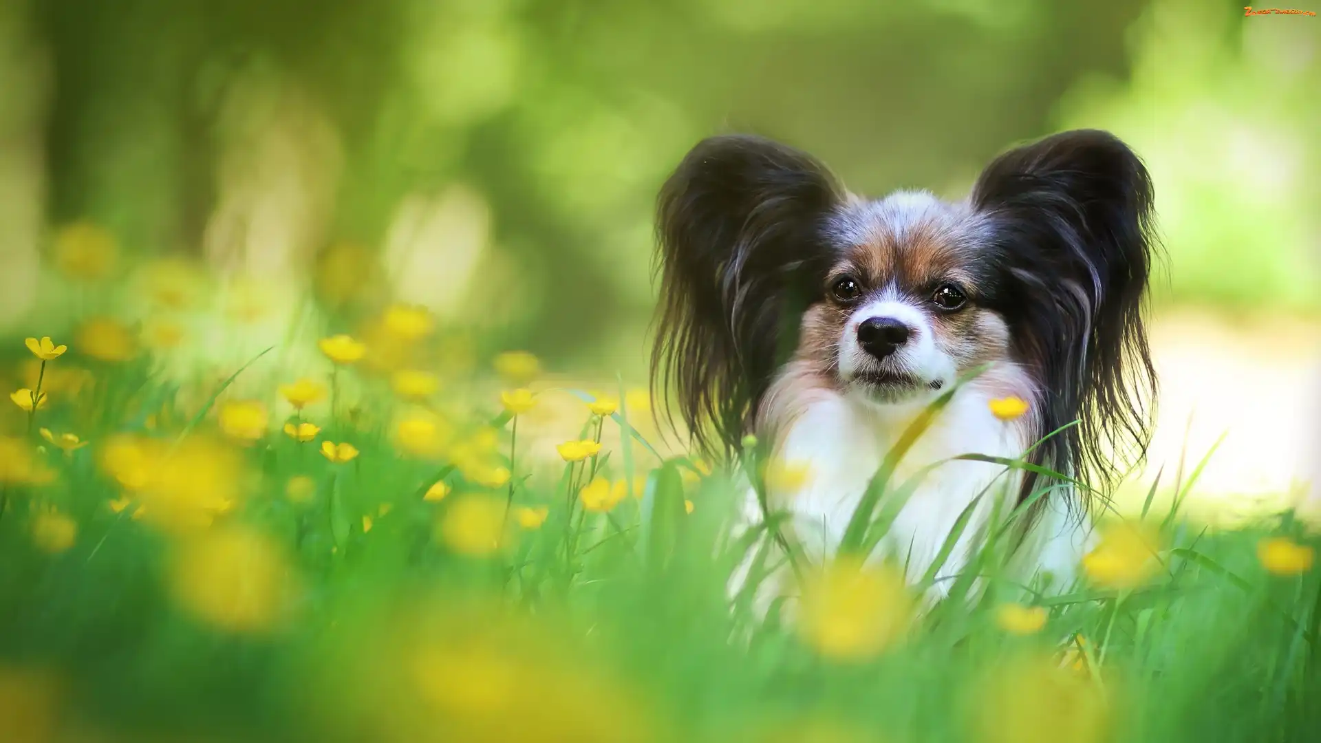 Trawa, Pies, Spaniel kontynentalny Papillon