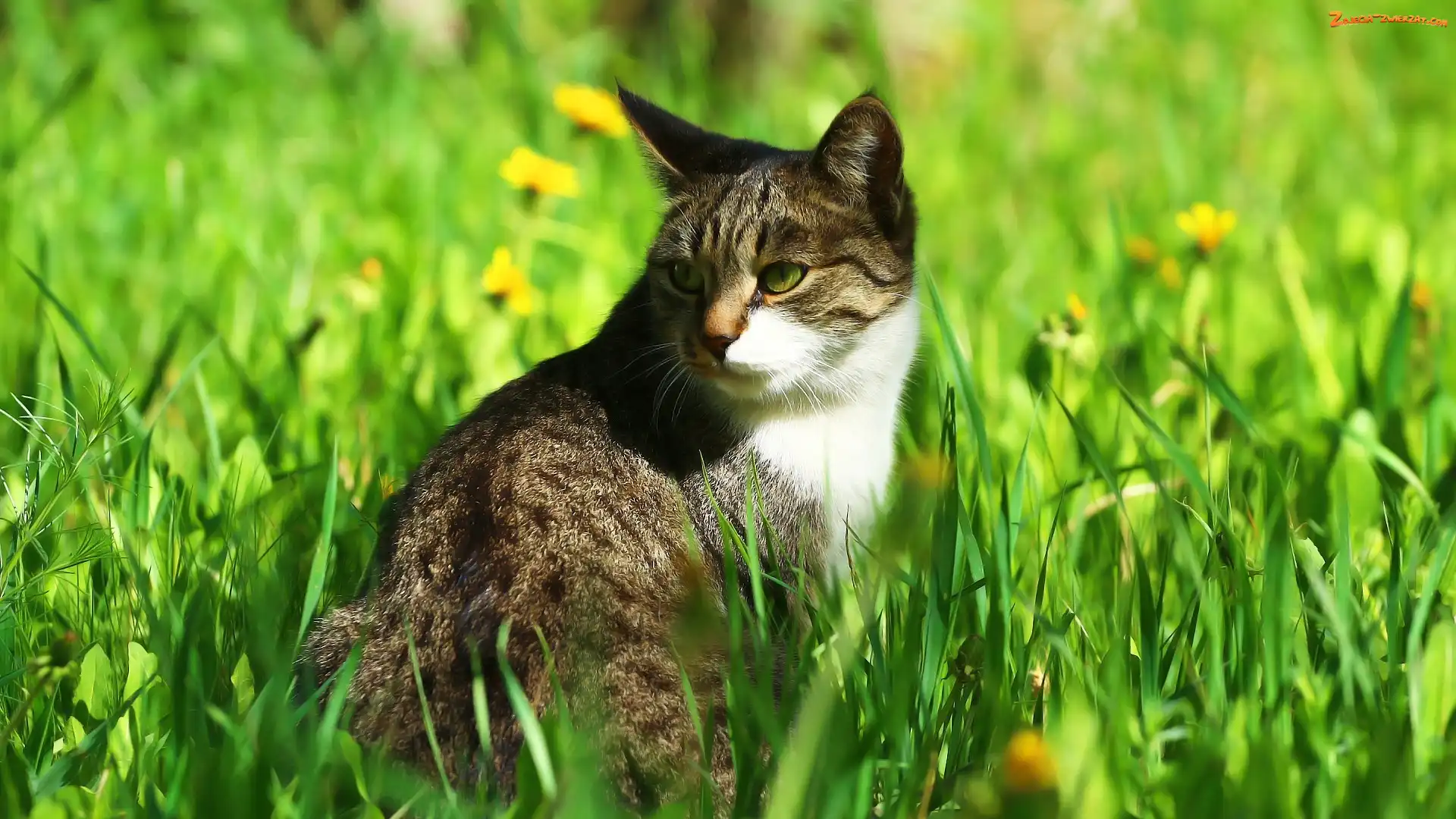 Zdjęcie: Trawa, Zieleń, Kot, Słońce