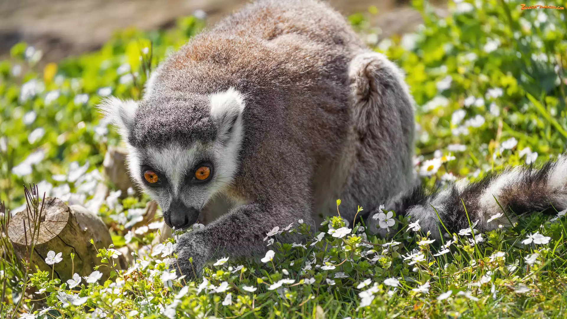 Zdjęcie: Trawa, Lemur, Kwiaty