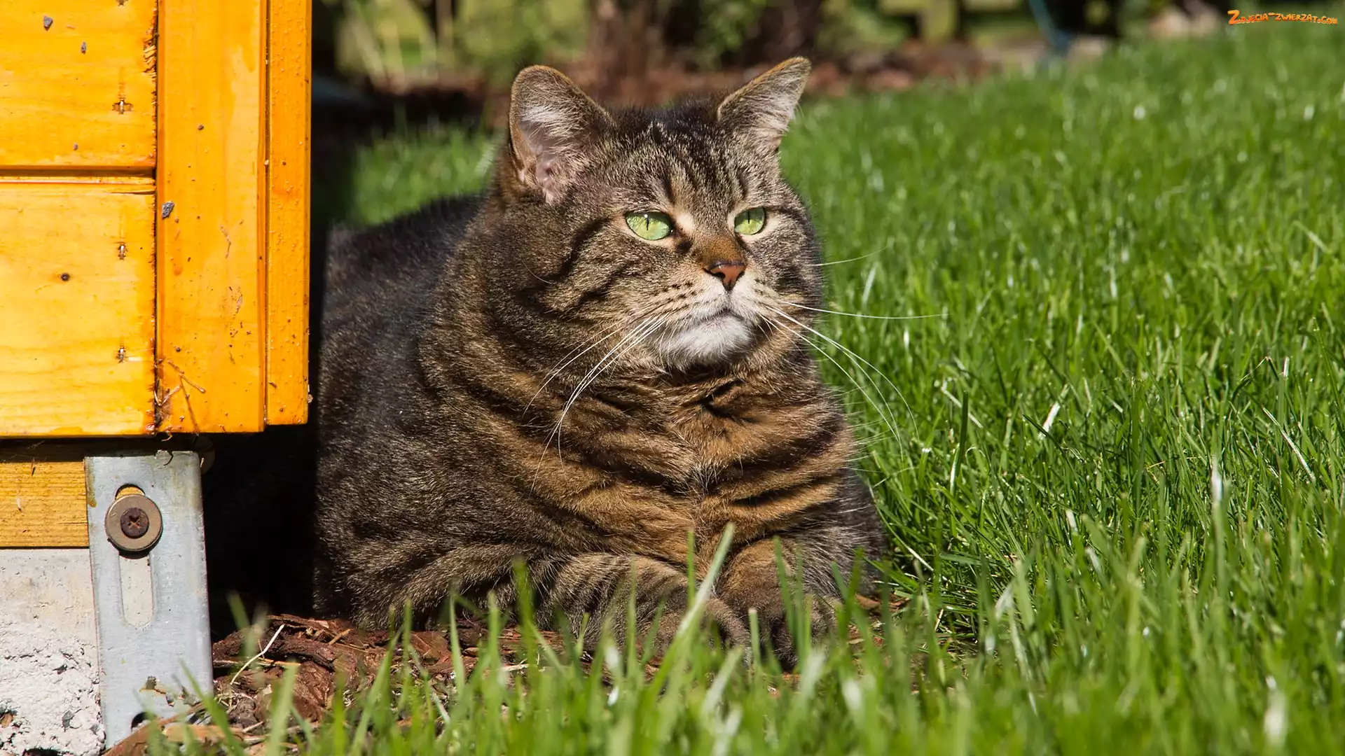 Trawa, Kot, Bury, Leżący, Zielonooki