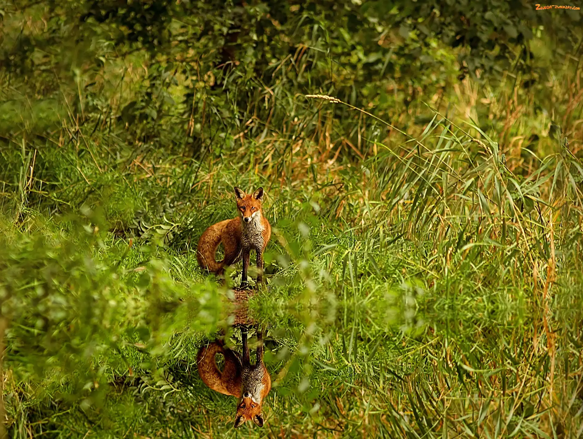 Zdjęcie: Trawa, Odbicie, Lis, Woda