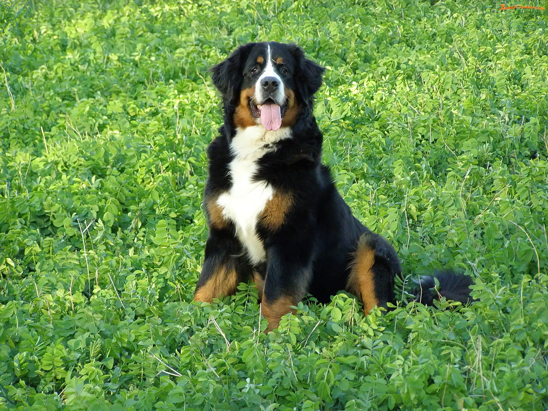 Zdjęcie: Trawa, Berneński Pies Pasterski, Język