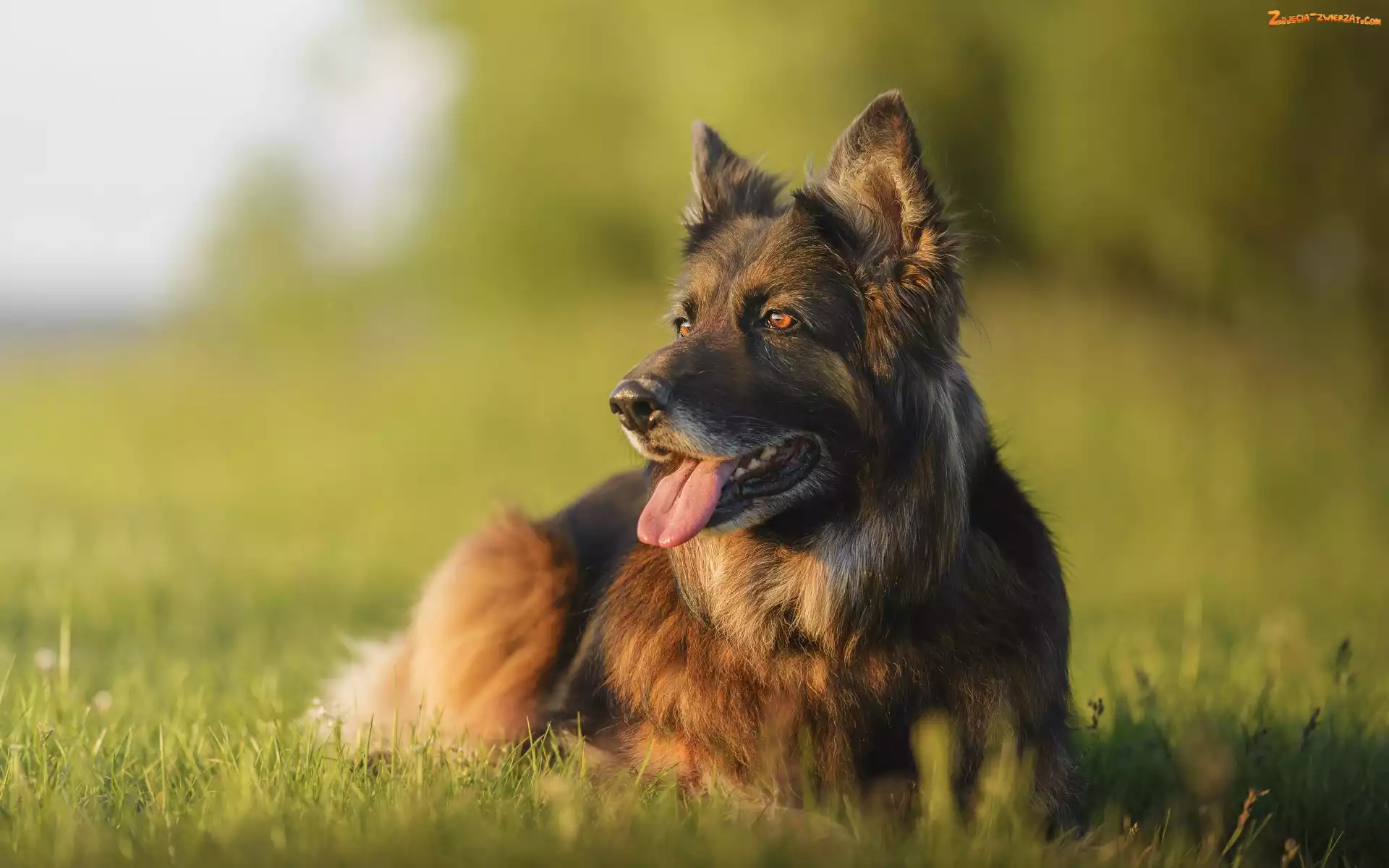 Zdjęcie: Język, Owczarek niemiecki, Trawa, Leżący, Pies