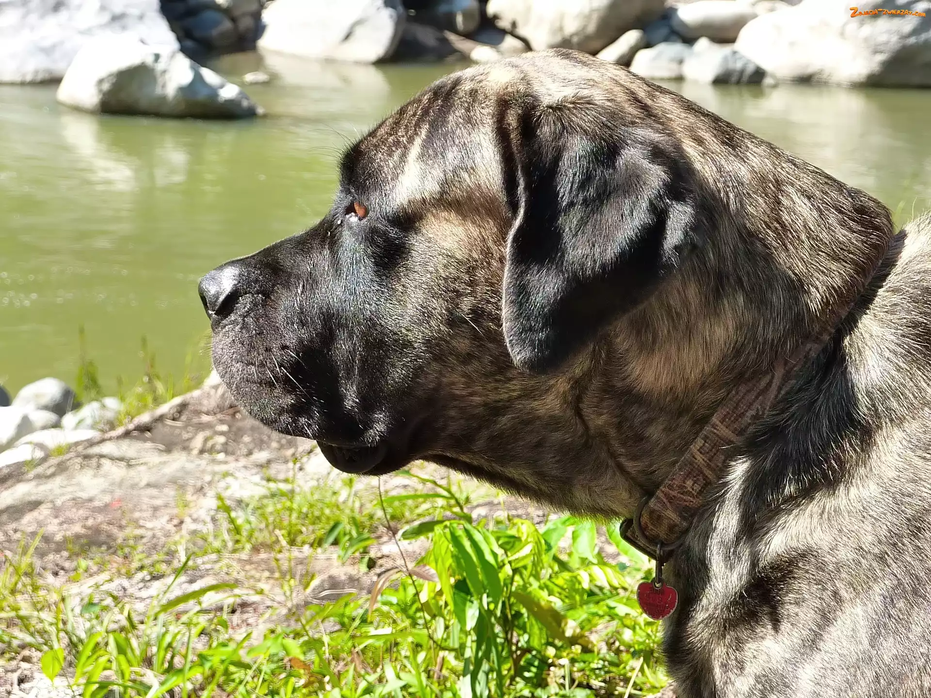Zdjęcie: Trawa, Kamienie, Głowa, Piesek, Woda