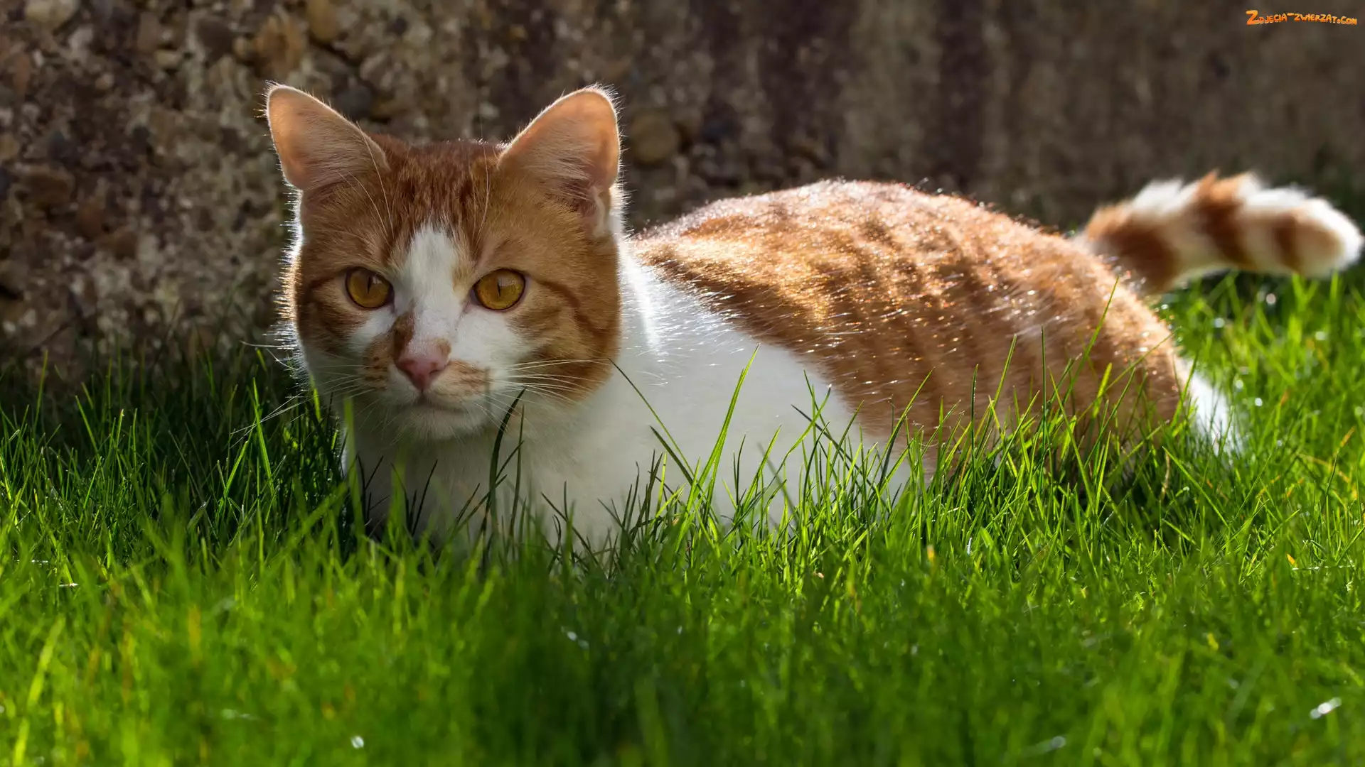 Zdjęcie: Trawa, Biało-rudy, Kot