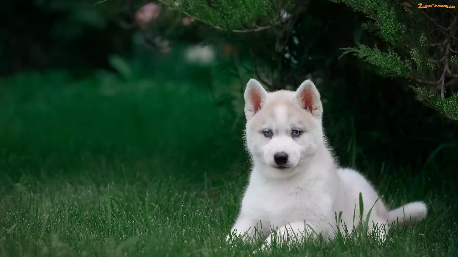 Zdjęcie: Trawa, Zielona, Szczeniak, Niebieskooki, Siberian husky