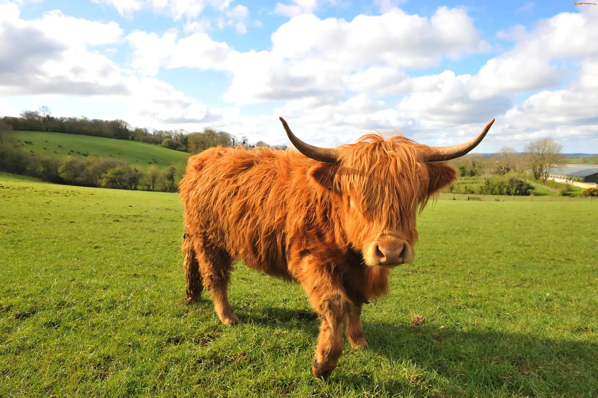 Zdjęcie: Trawa, krowa szkocka, Rogi