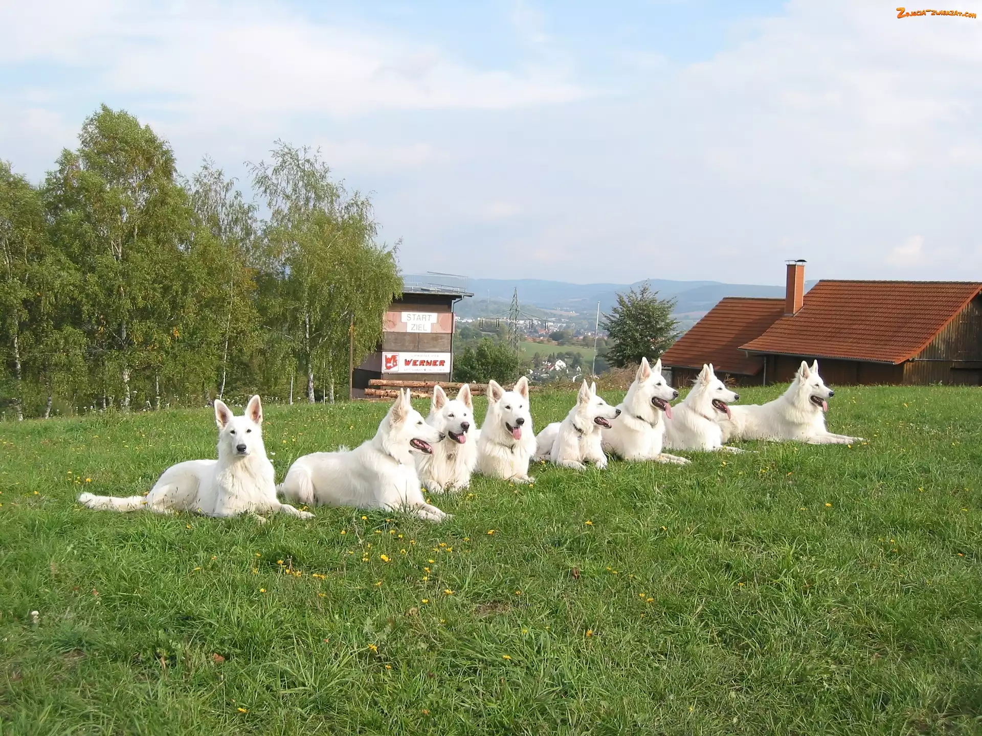 Zdjęcie: trawa, komin, Białe Owczarki Szwajcarskie, dach