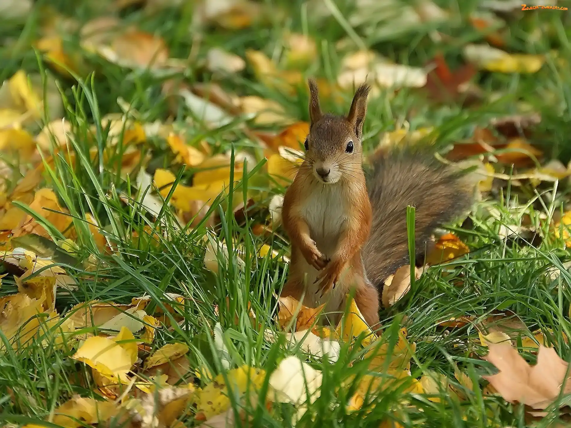 Wiewiórka, Trawa, Liście