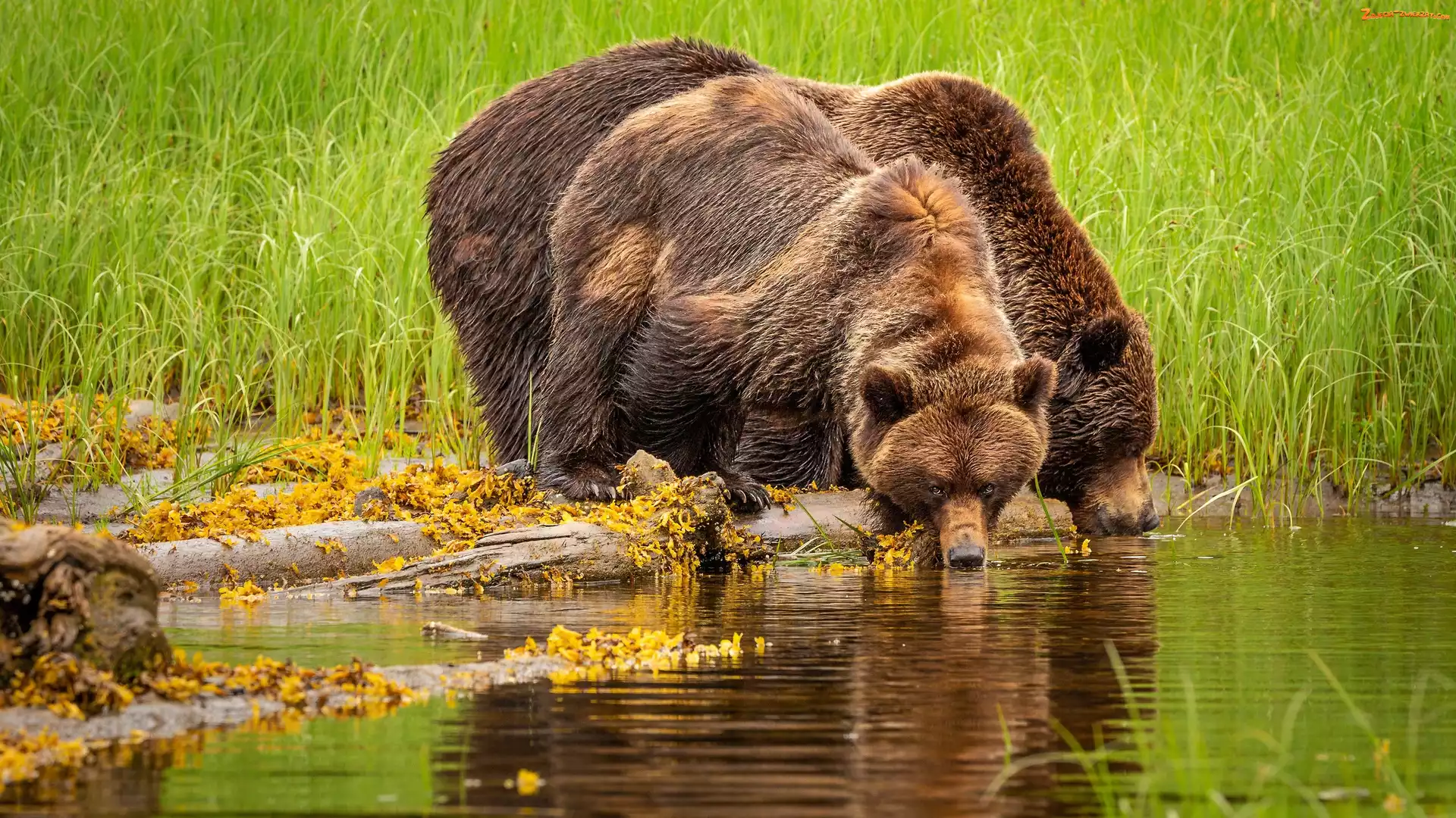 Zdjęcie: Trawy, Rzeka, Niedźwiedzie brunatne, Dwa, Grizli