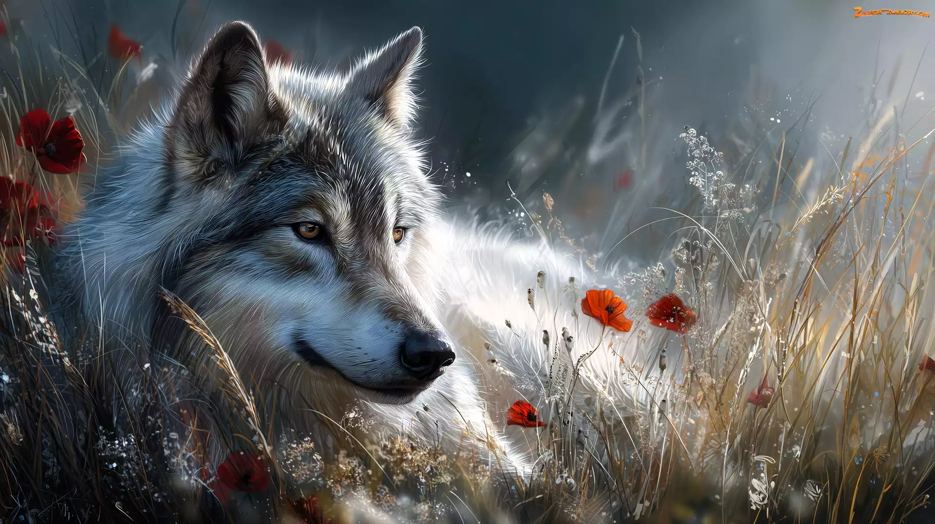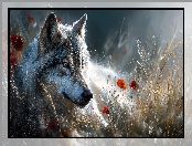 Zdjęcie: Wilk, Trawy, Grafika AI, Maki
