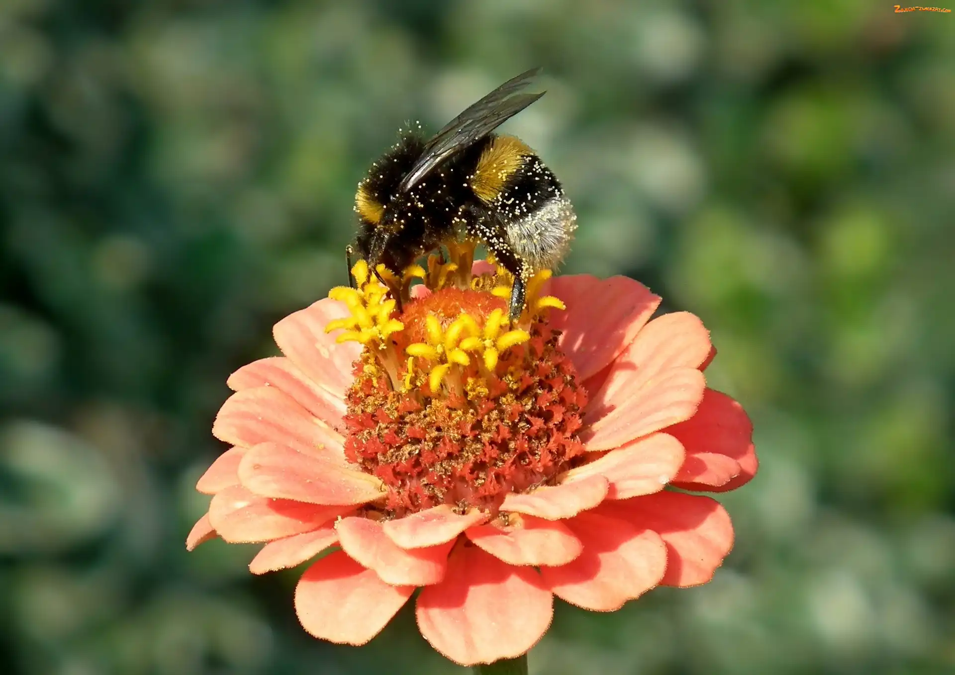 Zdjęcie: Cynia, Trzmiel, Kwiat
