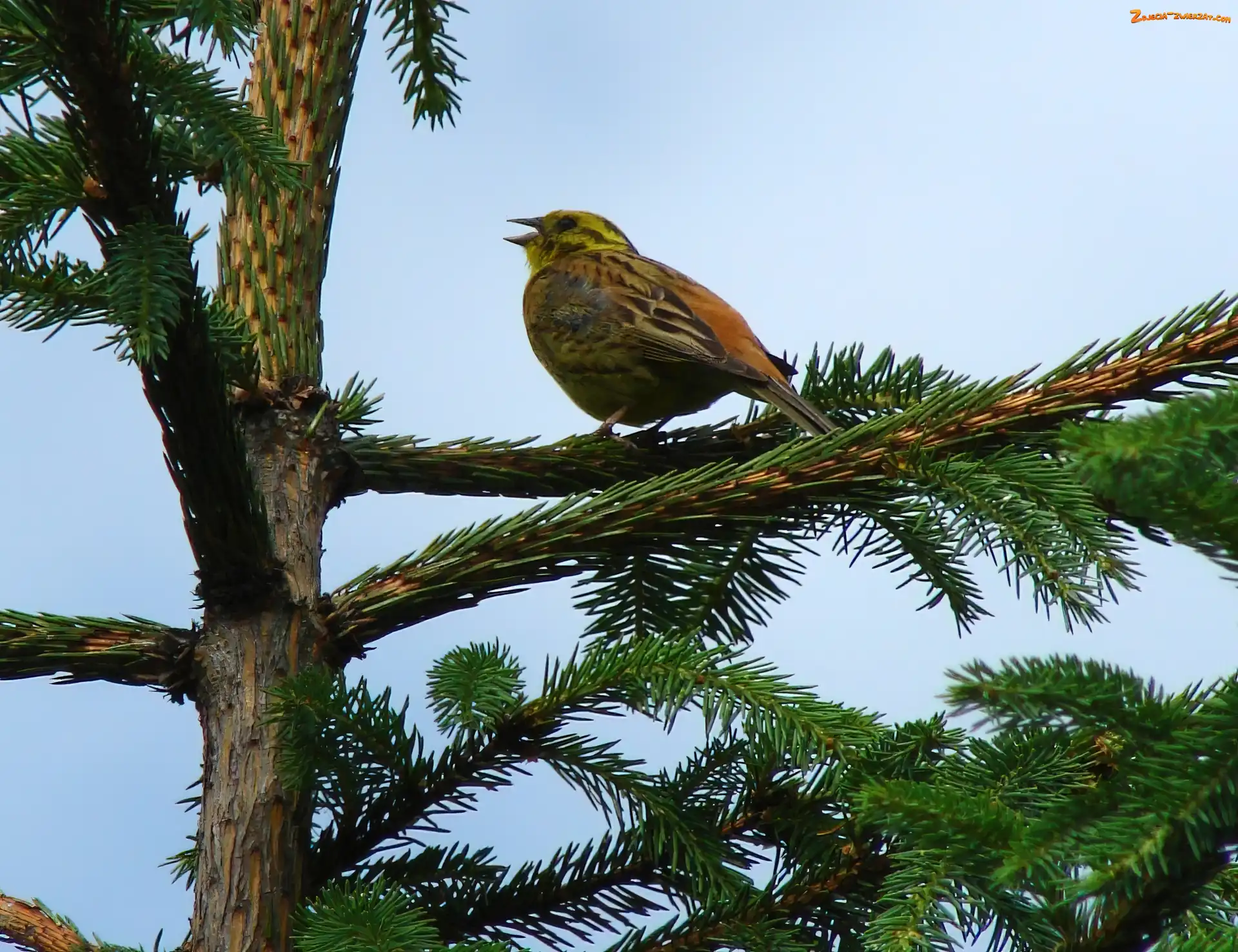 Zdjęcie: Drzewo, Trznadel, Iglaste