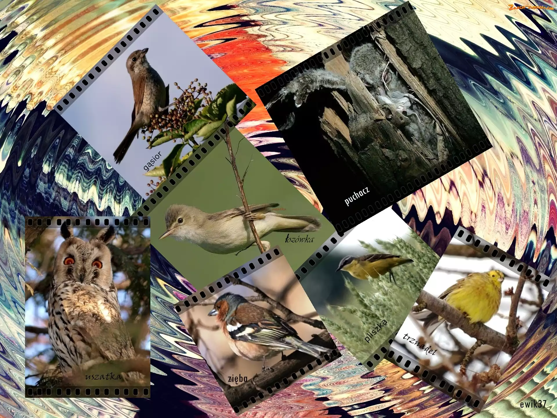 Zdjęcie: Gąsior, Grafika, Łozówka, Ptaki, Zięba, Pliszka, Puchacz, Uszatka, Trznadel