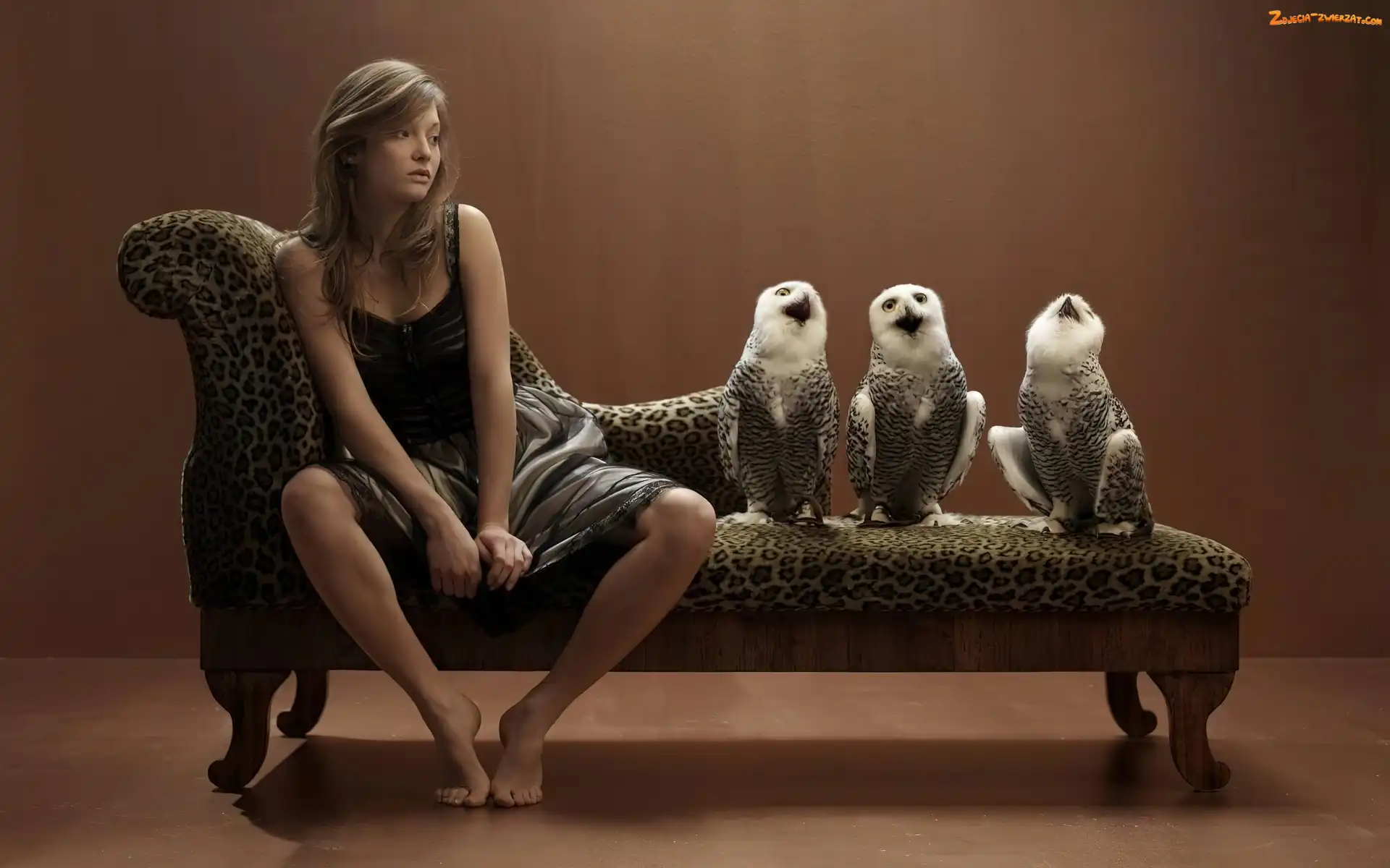 Dziewczyna, Trzy, Kanapa, Sowy